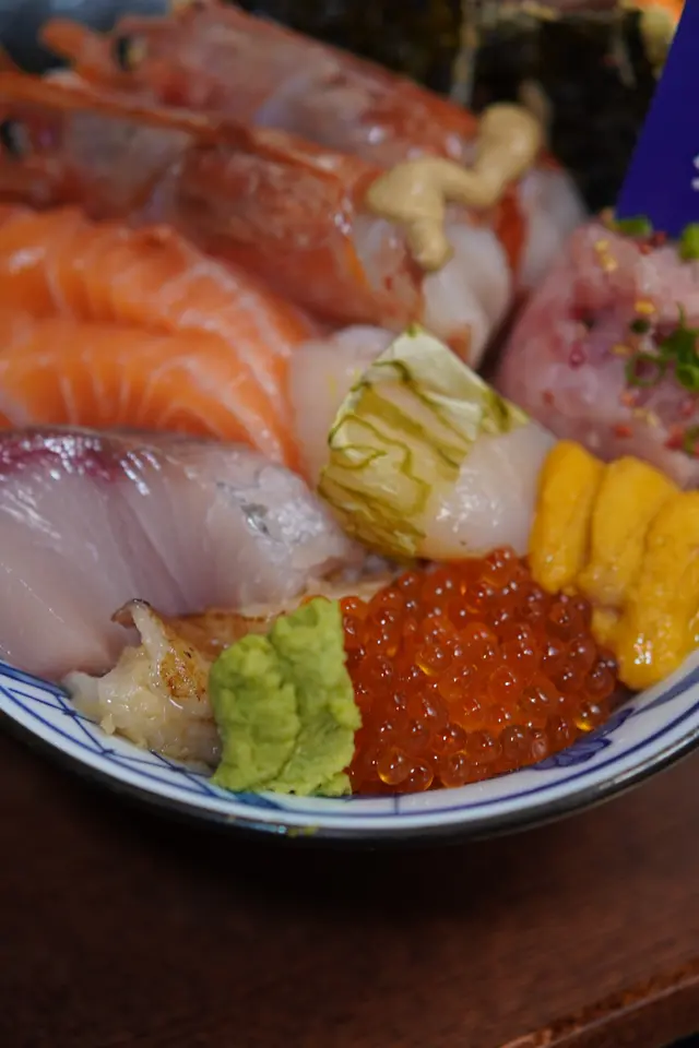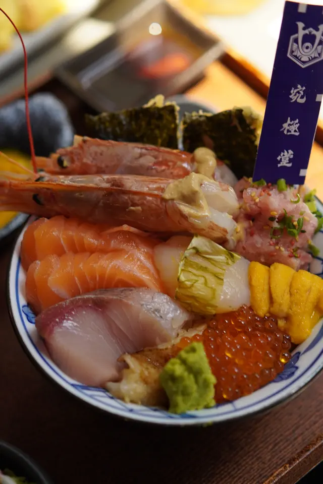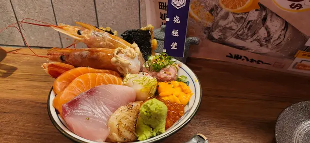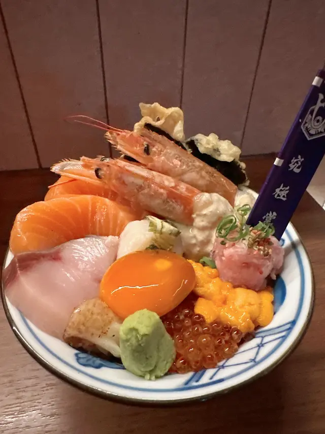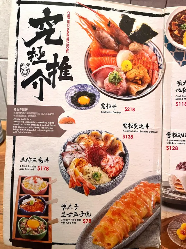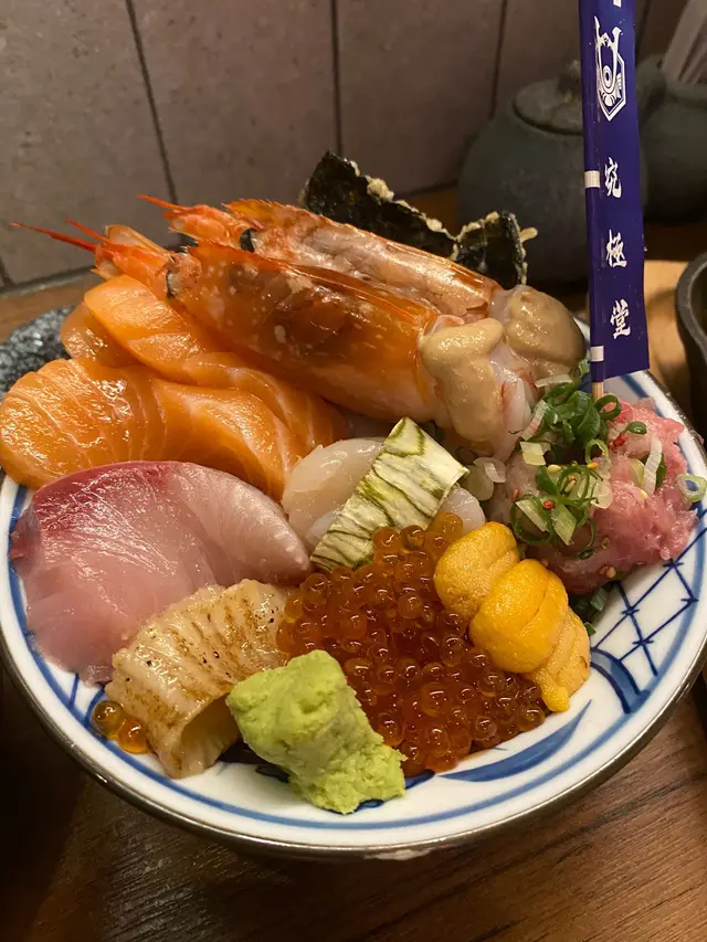 朋友話辛苦搵嚟志在食,所以,奢華少少嗌咗個「究極丼」,可惜喺海膽剛無貨,但會用番時令刺身補上。睇見份丼真喺好吸引,有帶子、三文魚籽、炙燒左口魚、油甘魚、三文魚、赤身、拖羅蓉、大赤蝦,仲搭上一隻蛋香十足嘅蘭王蛋,外觀非常吸晴。佢話啲刺身好新鮮,味道鮮甜,每款刺身都超好食,真喺無咩挑剔位,夠晒足料,物超所值。
