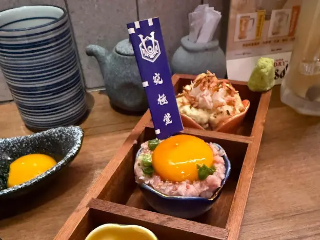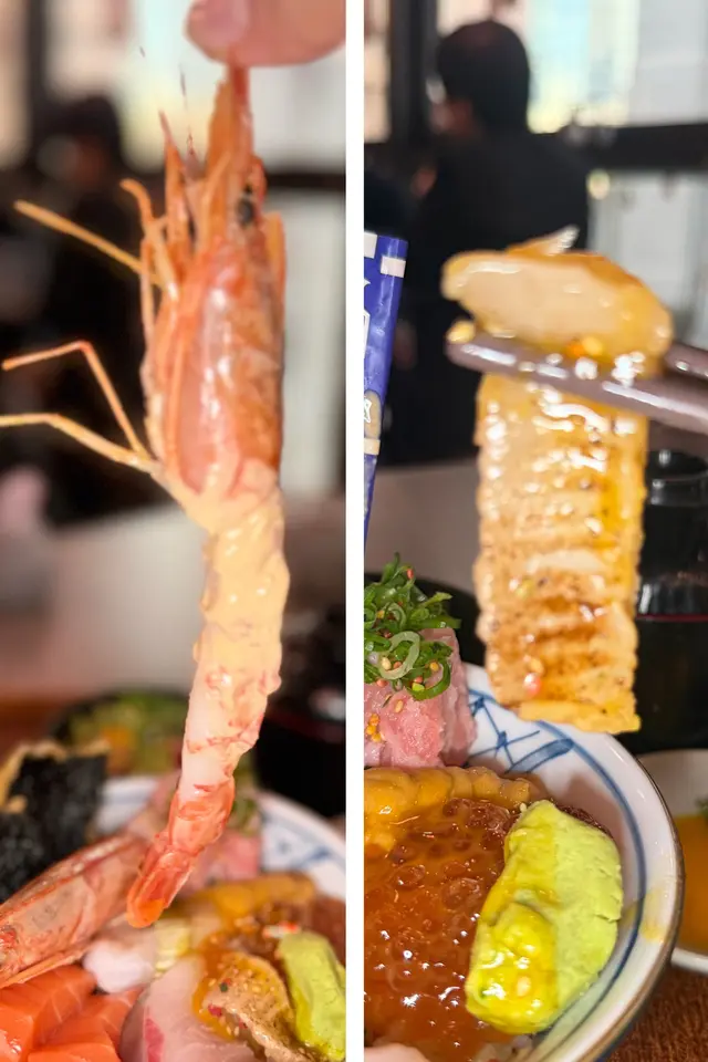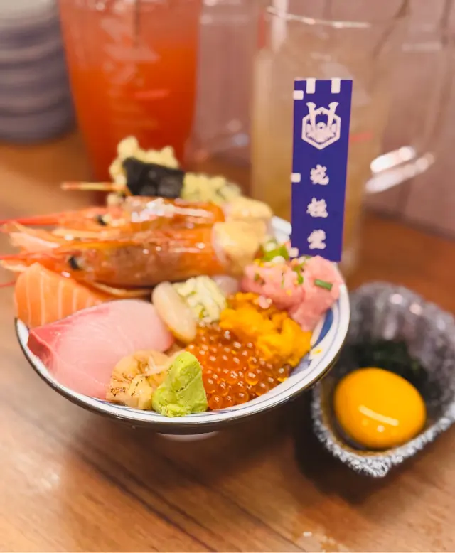 究極堂午市套餐,定食有好多,呢間出名刺身新鮮,我當然係揀返刺身類,午餐仲可以追加好多款小食,有薯餅,芝麻,雞翼雪糕同埋炸餃子究極丼$208大大粒嘅魚子,連埋啲蔥花一齊撈飯最好食,旁邊有兩塊紫菜天婦羅炸到卜卜脆,入口唔會太油,刺身蝦非常大隻啖啖肉,而且蝦頭嘅蝦膏仲相當多,三文魚非常厚身,一片等於平時嘅三片,鮮甜新鮮,呈靚靚嘅橙色刺身定食配白飯$178白子刺身味道清香,入口即化,帶有少少鹹香赤蝦刺身,入口軟糯鮮甜,蝦頭的蝦膏甘香,十分新鮮海膽鮮甜而濃郁,口感滑嫩,口中瞬間融化,甘香回味油甘魚肉質緊實,帶有豐富的脂肪,入口滑順帶有淡淡的甘甜鮮美三文魚柔軟且油脂豐富,鮮味十足,口感順滑煙靭三文魚子在口中爆開,釋出濃郁的魚卵香氣有細緻的咸味元貝肉質鮮嫩,入口鮮甜軟糯吞拿魚蓉口感滑膩且細膩,有濃厚的鮮味帶油香鰻魚芝士玉子燒$78雞蛋滑溜,中間有溜心嘅效果,入面加咗一粒粒嘅鰻魚碎,香滑又飽肚炸串,帶子他他$38帶子非常厚身,又鮮甜,炸完之後都依然保留到海鮮嘅鮮味,上面仲鋪滿一粒粒嘅魚子,非常有口感,非常喜歡嘅炸物…查看更多