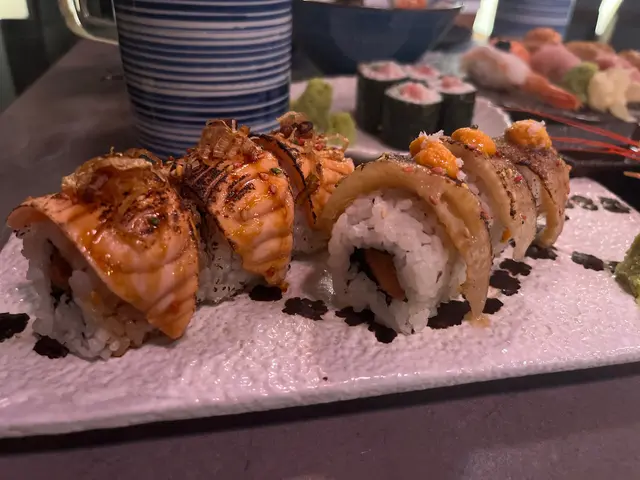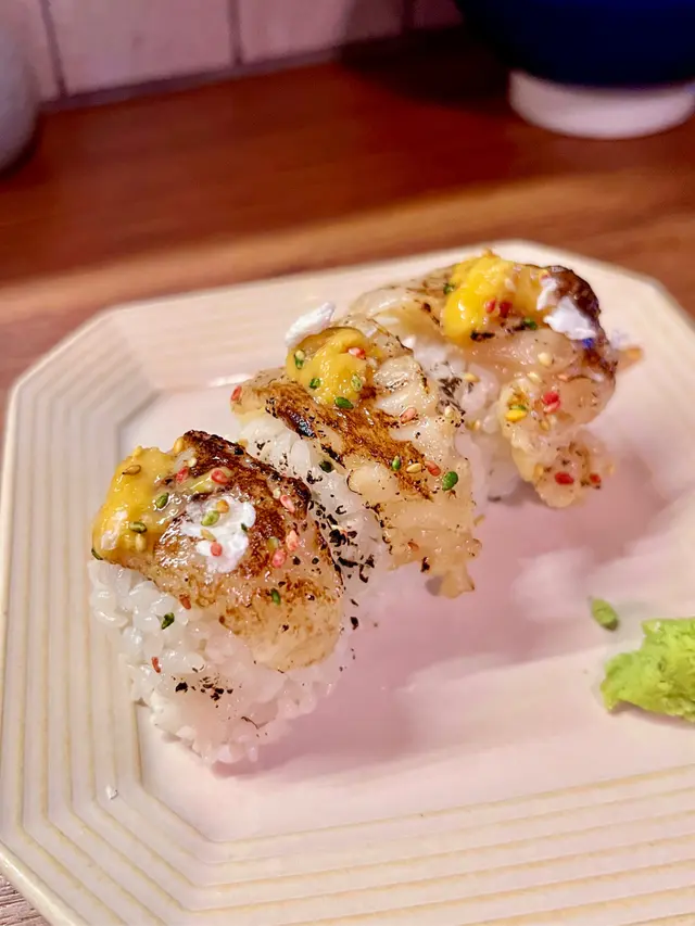 先試試店家嘅炸物,餐牌圖文並茂,見呢一款帶子他他賣相靚仔,就揀咗佢。外層脆漿唔算厚,最緊要喺做到脆而不膩,啲帶子好鮮甜,襯埋啲他他醬,加上三文魚籽,真喺相得益彰。