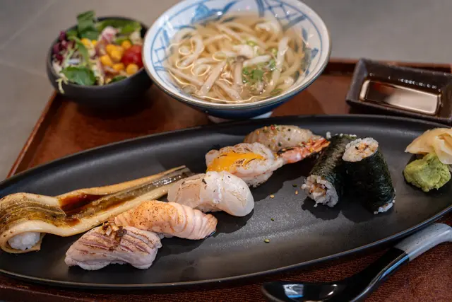 !午市主要喺賣套餐,慳慳哋嘅有蛋包飯、牛肉丼、烏冬……之類,豪啲嘅有刺身丼、刺身定食、壽司定食……之類,正所謂豐儉由人:)。此外,散點餐牌嘅食物亦會全數供應。
