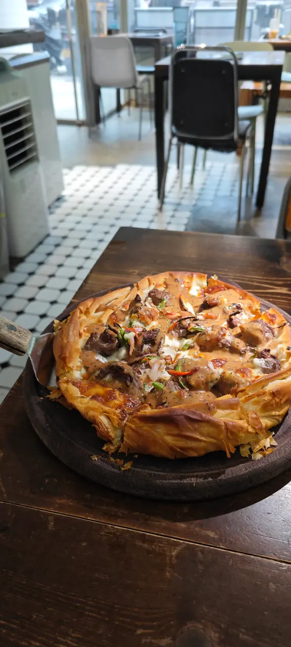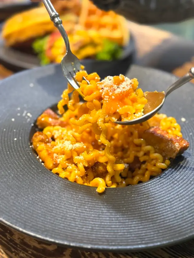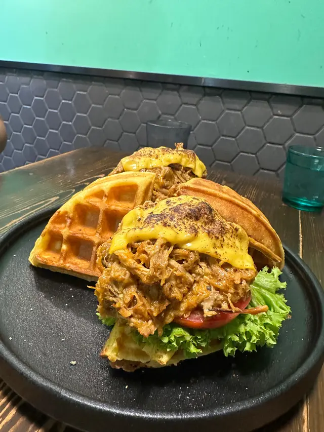 最近去了新蒲崗一間人氣cafe,餐廳裝潢散發著港式懷舊情懷,食物亦很有水準,成為不少文青消閒打卡熱點。意式番茄肉丸芝士酥皮薄餅$158 pizza餅底變成爽脆蓬鬆的酥皮,入口更有層次感,牛油香味極濃,芝士可以造出拉絲效果,肉丸口感紮實不鬆散,配上酸甜多汁的車厘茄,令人胃口大開手製牛肉漢堡窩夫三文治$128最傳統的基本款漢堡,創新地以厚身格仔窩夫代替麵包,夾著煎蛋、芝士、牛肉漢堡扒、蕃茄、生菜、醬汁,漢堡扒口感扎實爽彈,鎖緊肉汁。自家製野菌忌廉汁松露油曲曲意粉$102捲捲意粉以高蛋白硬質小麥製成,最大特色是它的長條螺旋造型與中空結構,麵條結構堅韌且富有彈性,極易掛上濃稠野菌忌廉醬汁。叄重朱古力麻糬窩夫配朱古力雪糕$84剛出爐的窩夫伴朱古力雪糕,帶來一冷一熱的雙重感官體驗,窩夫烘得香脆,質地偏薄身,外脆內軟,中心位混合了朱古力脆脆,加上澎湃朱古力醬,可可味極之濃郁,髒髒提拉米蘇$72自家製Tiramisu亦是人氣甜品,滿滿忌廉包裹著浸滿咖啡香的手指餅,融合了苦香可可和濃縮咖啡粉,保持細緻濕潤的質感,入口即化。朱古力鮮奶咖啡$44 Mocha入口綿柔,結合了朱古力的香濃與咖啡的濃縮口味。熱京都宇治抹茶鮮奶$46茶香濃郁而清幽,散發抹茶的微瀝回甘。…查看更多