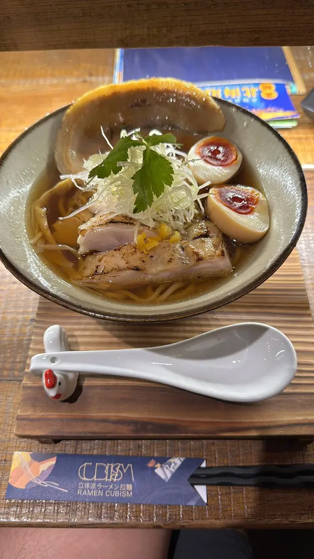立体派拉麵是我有bookmark的一家拉麵店,但一直未有特意前往。剛好這次和朋友在上環處理事務後,便行過來立体派拉麵吃晚餐。店舖門口在一條小巷,我們都錯過了路口,走回頭幾步,到了路口,下幾級樓梯才到達拉麵店。主餐牌分別有5款拉麵及1款沾麵為常設選項,當中的特級白湯拉麵和九味醬油湯拉麵均是主廚推介。選了前者,是曾經獲獎的一款拉麵,湯底以有機飼養的京都丹波地雞及籠目昆布精製而成,先試湯頭,濃郁鮮味,清爽不油膩。配料有低溫慢煮叉燒及溏心蛋,3大片的叉燒肥瘦相間,口感柔軟,有微微炙燒香氣。溏心蛋的蛋黃呈橙紅色,富蛋香,稍嫌略略熟了一點,不夠流心。拉麵麵條彈牙又掛湯,份量十足,吃完一整碗拉麵好夠飽肚!火炙豚肉擔擔沾麵,朋友選了Level 2的辣度。沾麵汁是以濃郁雞白湯與芝麻味增醬熬製而成,而辣醬是以秘製辣椒油混合3種辣椒所製,我和朋友都覺得Level 2的辣度已好夠辣!沾麵的麵條較為粗身,口感煙靭又掛汁。4大片的叉燒,味道微甜濃郁,但口感沒那麼柔軟。唐揚脆炸雞,炸雞大件,脆漿厚薄適中,新鮮熱焫炸起,皮脆而肉嫩多汁,微微鹹香,擠些檸檬汁及沾些蛋黃醬就更為滋味!店門隱蔽的一家拉麵店,由麵食以至小食都很好吃,份量又夠飽肚,值得再來試試。…Read More