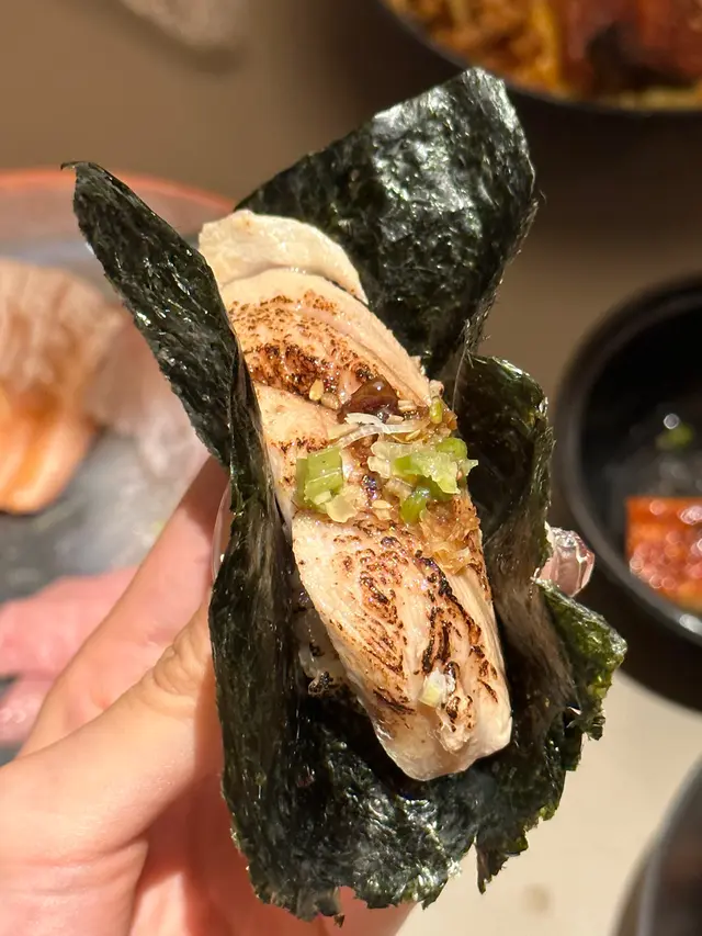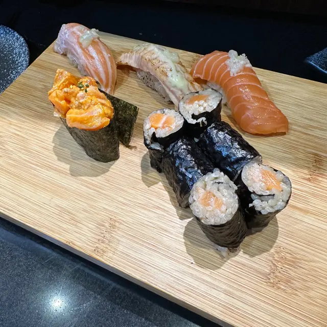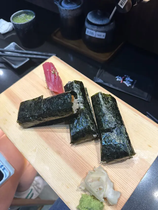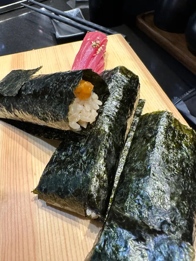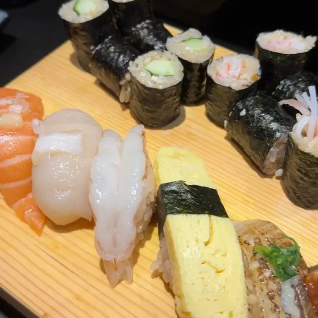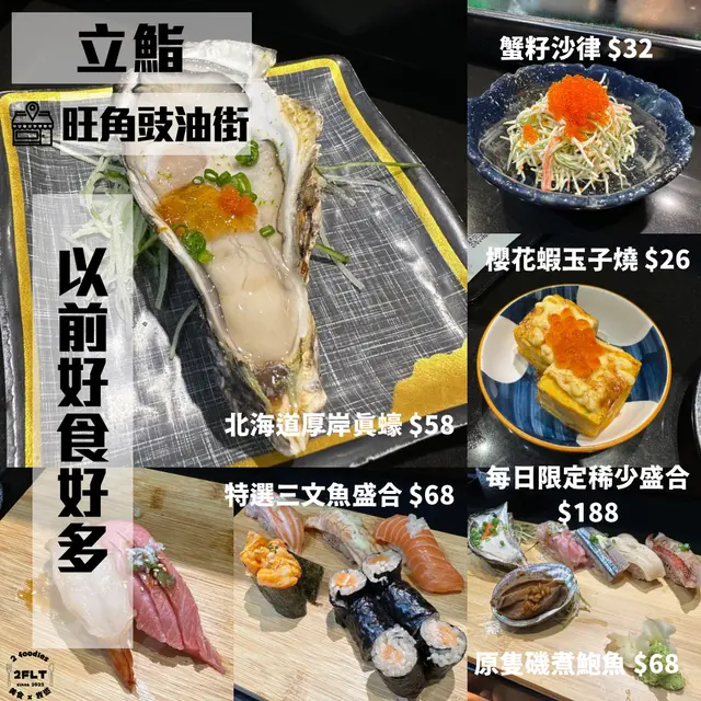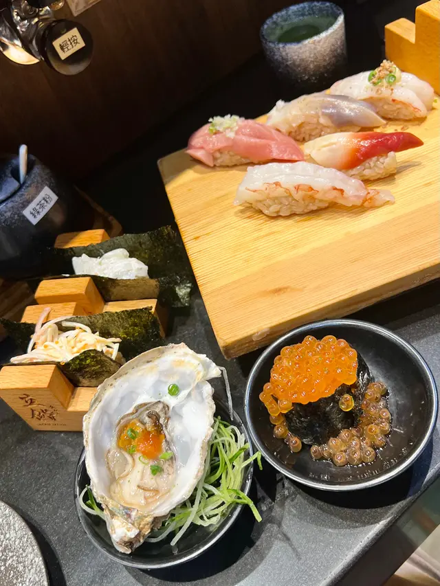 晚餐喺旺角食,黎到呢間小小嘅壽司店,佢座位唔多,只有bar枱位置,但係位置適中,唔會太迫。食物種類有好多,亦有期間限定menu。今次叫左日本蠔$38一隻,好平,質素好高,好肥美鮮甜。迷你海膽魚子杯,海膽好甜好新鮮,三文魚子都係甜,完全唔覺有腥味,粒粒飽滿。不過太細杯,食唔夠喉,下次我會叫佢地嘅丼試下。另外叫左一堆壽司: 三文魚壽司,中拖羅壽司,油甘魚壽司,鮮帶子壽司,火炙左口魚壽司,火炙三文魚壽司,金龍卷。全部都係好新鮮,火炙嘅壽司亦都好香口,油脂入口即溶咁。金龍卷比其他壽司店嘅更大份,不過唔係因為飯量多,而係佢隻炸蝦好大條,又脆,真係好好食。…查看更多