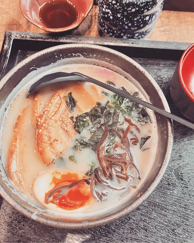 係一個炎熱既下午結束上午既工作,就要好好咁犒賞自己。餐廳唔大,勝在地理位置夠方便。麻雀雖小,五臟俱全,餐牌上面甚至有埋廚師發辦呢個選項。我就選擇左日式叉燒拉麵。飲品要加錢,同埋佢本身有茶水提供。所以我就淨係飲佢嘅日式茶。首先嚟到嘅就係佢幾個小菜,同埋佢嘅味噌湯。我嘅步驟就係食咗沙律先,之後就係(先付):八爪魚加螺肉。呢兩樣嘢其實真係好開胃。沙律喺最大嘅程度上保持左生菜獨有嘅新鮮口感。先付有醬汁醃過,所以有淡淡嘅海鮮味。個人鍾意食八爪魚多啲。之後我就食咗炸餃子,炸得酥脆入味,入面多肉同埋多菜。味噌湯就同另外壽司舖一樣,有紫菜同埋豆腐。拉麵上枱時間都算快,賣相睇落唔錯。糖心蛋入面嘅糖心係液態。流落面汁,沾上拉麵別有一番風味。叉燒有三塊,啖啖都係肉,得少少脂肪。湯底好濃郁,呈奶白色,入面嘅紫菜好多。紫菜上方滲有少少芝麻,口感相當豐富。唯一美中不足係30度既夏天,店舖內好似冇冷氣咁。所有定食價錢都包前菜加湯。成個lunch一共$88。さらに見る