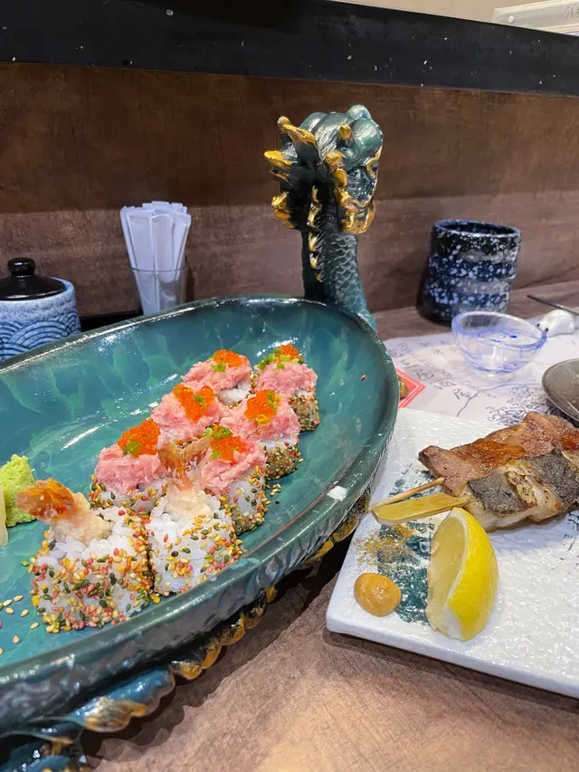 上次喺北角經過 見到呢間日式餐廳 就入左去食野🍴嚟到當然要試招牌「竜王卷」用咗超有氣派嘅龍頭盤裝住😂佢係炸蝦卷 上面再放吞拿魚蓉同三文魚籽 真係超級豐富 個壽司飯仲加左啲醬油 食落更惹味!さらに見る