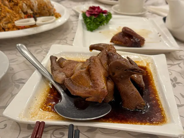 從前認識的「竹園海鮮飯店」位於跑馬地,是食海鮮的好去處,多年未去過,原來早已搬遷上環。有六十年歷史的老字號,菜式依然是老味道。闊別多年,特別來吃推廣菜式。門外易拉架力推佛跳牆、潮州及吉品鮑魚等貴價菜,但價錢不算貴!秘製潮州翅 $358碗仔頗大,盛得滿滿,黏稠金湯,看來對辦。魚翅煮至軟身半溶,骨膠原滿瀉,份量不算少亦不多,我唔覺得有三両。湯濃味厚,喝得滋味,整體水準滿意,值得重温。帶子釀關東遼參 特價$88/條 原價$198原來是酥炸遼參,外層被薄薄的炸漿包圍,並非現時流行高級食肆吃到的脆皮遼參。明白一分錢一分貨,欣賞這裏的聰明的變化奏,爽口的遼參釀入鮮美帶子,再配上酥脆外層,口感唔錯,味道好,推廣價吃得過。黃鱔飯 $88/位 兩位起無需北上,可以吃到黃鱔飯,而且煲到有飯焦,水準唔錯。番薯糖水、芒果布甸服務員非常殷勤推薦甜品,盛情難卻,原來是贈送的,更加開心!傳統番薯糖水,甜度適中,番薯軟糯。芒果布甸幼滑,亮點是煉奶,合我口味。茶錢$20/位…查看更多
