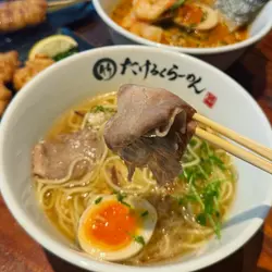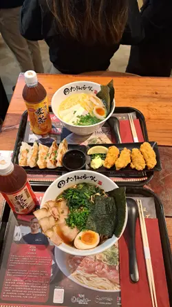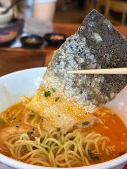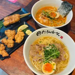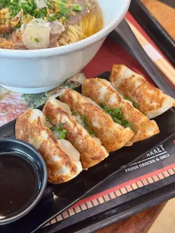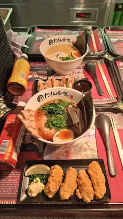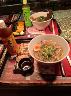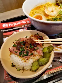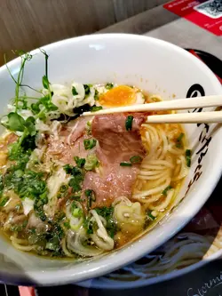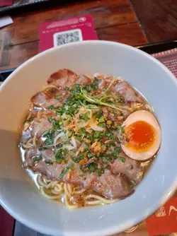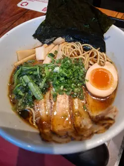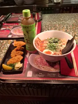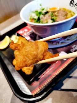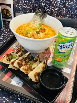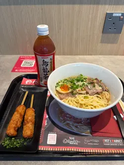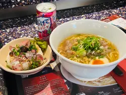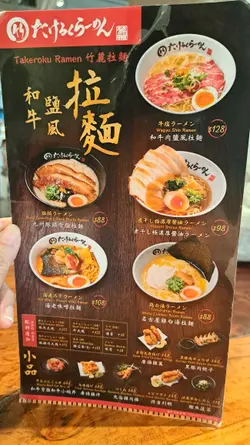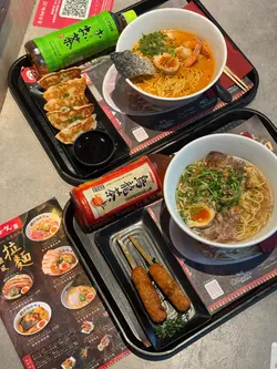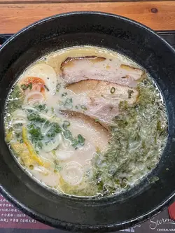 中環街巿裡美食種類多,我和朋友看見一間日本拉麵店<竹麓拉麵>。開放式廚房,看見廚師用心製作拉麵和準備配料。餐廳主要提供5款拉麵,價錢由$88至$128,配料可追加。小品/小食也有7款,可選菜和肉,價錢由$18至$48。飲品類可選樽裝$16和罐裝$12。我們便決定在這間拉麵店吃晚餐,點了兩個拉麵餐,毎個餐加配小食和飲品。分別是👉1. 和牛肉鹽風拉麵、黑豚肉餃子和樽裝麥茶👉2. 海老味噌拉麵、炸吉列蝦和樽裝麥茶。👉和牛肉鹽風拉麵、黑豚肉餃子和樽裝麥茶湯底濃郁,充滿著和牛、香蔥、炸蒜味道。半隻流心蛋、四塊和牛;拉麵粗幼和軟硬適中,帶點嚼口。黑豚肉餃子,共有5件,外皮煎得香脆,內裡黑豚肉肉質滑溜,且帶有肉汁,非常美味。👉海老味噌拉麵、炸吉列蝦和樽裝麥茶橙色湯底,有著鮮蝦和味噌味道,湯底較濃稠。半隻流心蛋、三件彈牙鮮蝦和一塊香脆炸魚皮。炸吉列蝦,共有三件,炸漿薄,香脆可口,蘸上美乃滋醬和檸檬汁很好吃。樽裝麥茶~眾多飲品中選擇了麥茶,皆因麥茶有助消化又利尿消腫,吃完拉麵喝一樽麥茶,的確很不錯選擇。…查看更多