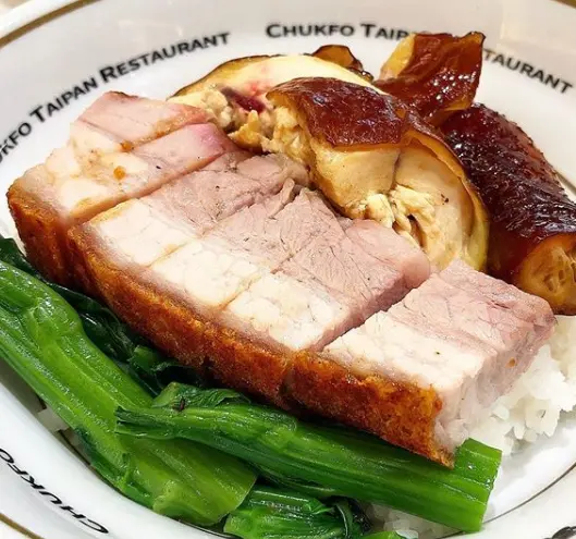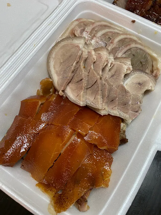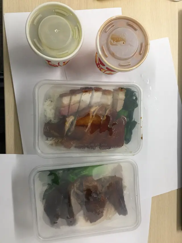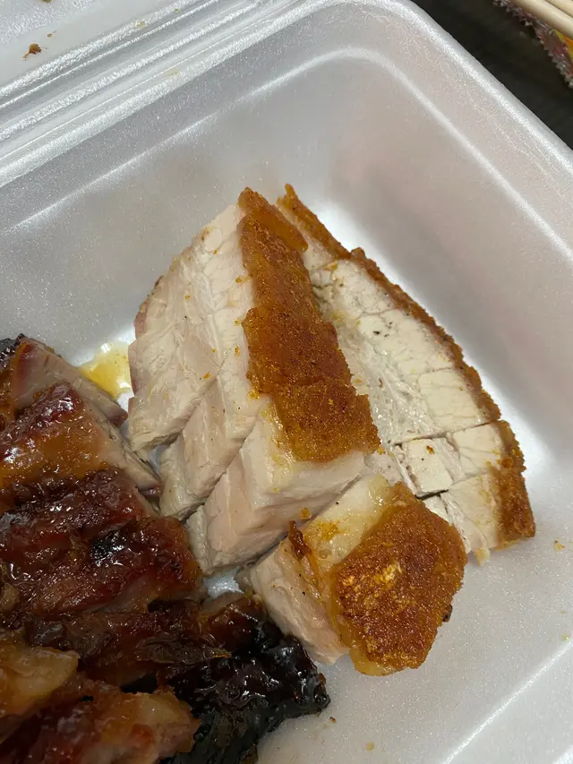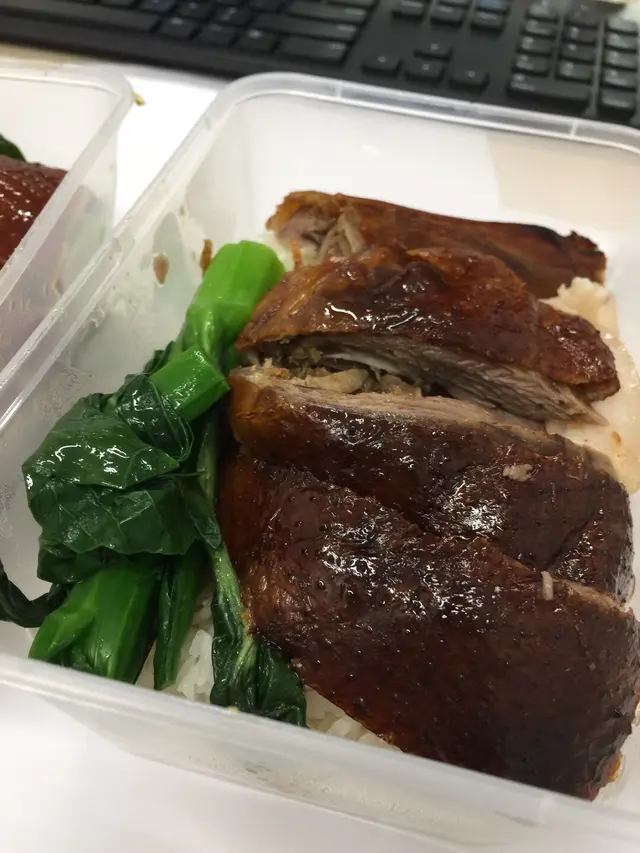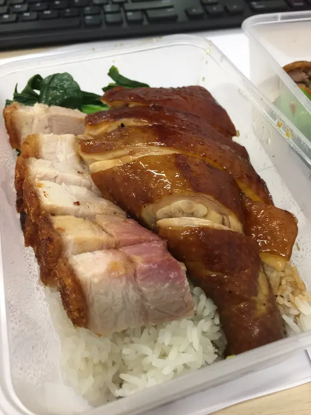 ,肉質嘅肥瘦非常均勻,食落唔會覺得好肥膩,唔會成口肥膏,而且豬味十足,鹹味剛好,不過略嫌切得大舊左啲。燒鵝方面,燒鵝皮都燒得幾脆,肉質夠腍,比較瘦,醃得入味