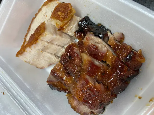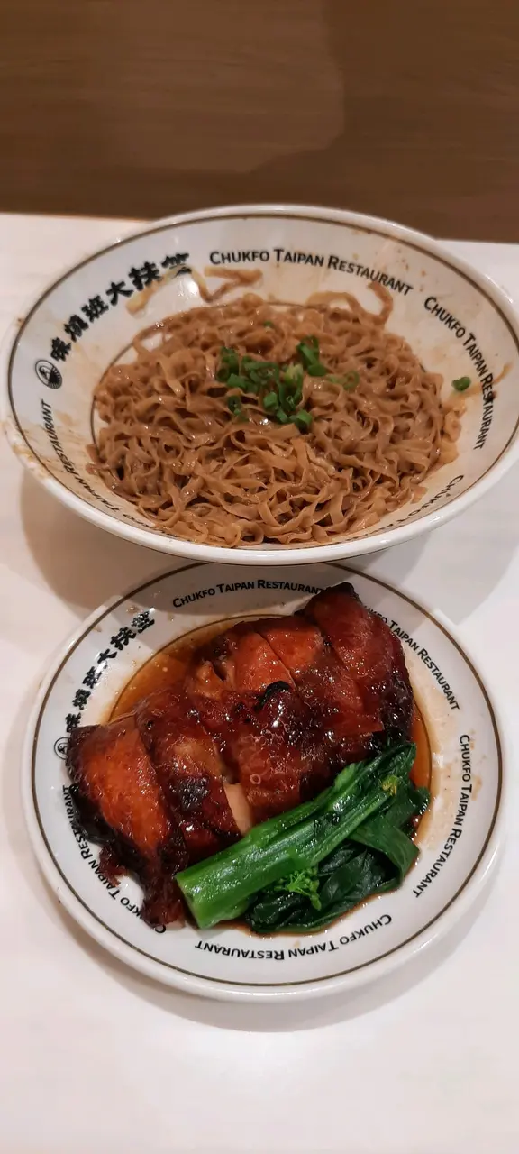 我哋去到嘅時候,剛好可以食下午茶,下午茶嘅燒味可以將飯改為配瀨粉、上湯粗麵或米粉。一場嚟到,就梗係要試吓佢最出名嘅叉燒啦。🐷我哋叫咗半肥瘦叉燒,店員都幫我地盡量安排,雖然係下午茶,但叉燒嘅份量都唔會太少,每一舊亦唔會切得太薄,保留到啖啖肉嘅口感。雖然係叫咗半肥瘦,但感覺都係偏瘦,較有咬口。呢道嘅叉燒不算好甜,麥芽糖唔算多,吃起來有點偏重生醬的味道。另外,玫瑰露香味幾濃,一咬就食得出。