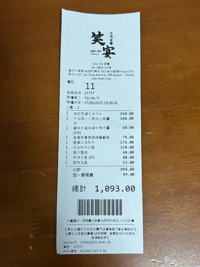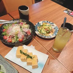 最近工作上既忙碌終於暫告一段落😁同老公去搵好野食慶祝下❤️🍾見到灣仔利東街新開左間日式居酒屋就想試試🇯🇵裝修有日式居酒屋feel🏮以和風木色為主調,佈滿特色海報🧡加上燈光柔和,服務亦好殷勤,整體體驗唔錯💯居酒屋主打各種特色日式酒類及佐酒小食😙呢度既總廚係日藉+擁有35年經驗💗全新推出既菜式有廣島蠔松前燒、海鮮卷、手作北海道產吉列薯仔沙律、自家製芝士豆腐、香脆關東煮蘿蔔等~~全部都好想試呢❣️❥ 板前炙燒日本牛扒 $268勁打卡!!店員會席前用火焰燒牛扒🥩🔥(點呢道菜真係要準備定手機📱)牛扒勁高質🧡外焦內嫩,顏色粉嫩,炭燒味香濃,咬落口有滿滿既肉汁💦食完好滿足💕❥ 日本和牛温泉蛋凱撒沙律 $138份量好多🥰和牛好粉嫩,搭配滑嫩既温泉蛋😍加上清爽既沙律菜,同埋大量既芝士碎🥗成個配搭勁豐富❤️🔥❥ 沖繩AGU豬肉餃子 $68餃子皮薄餡多,粒粒都勁飽滿🥟豬肉鮮嫩,入口juicy!!搭配埋醬油好好食😋❥ 雞肉大葉串燒伴梅子醬 $68雞肉串燒香嫩,搭配酸酸甜甜既梅子醬!兩者平衡得好好,食落唔會太膩,又開胃💕❥ 輕燒日本和牛 $176賣相超靚!!薄切和牛輕輕一燒,肉質柔軟,油花十足!輕燒既方式令肉味更加突出🥩鍾意食和牛既人唔可以錯過🫶🏻❥ 日本和牛炒飯 $128炒飯份量比想像中多🫶🏼和牛入口軟嫩,油脂感重😚炒飯炒得乾身粒粒分明,伴上雞蛋同蔥花,口感味道都好唔錯🥰❥ 蕃薯大福配抹茶雪糕 $78結尾點呢個甜品真係岩岩好☺️大福口感軟糯Q彈,唔會太甜!裡面包住香甜既蕃薯餡🍠配上抹茶雪糕,味道清新💚❥ 四季柑汁 $48清新可口,果味濃郁,好解渴❤️❥ 菠蘿梳打 $48菠蘿味清新又香甜🍍飲落仲有啖啖果粒😙夏日必飲✨🌻…查看更多