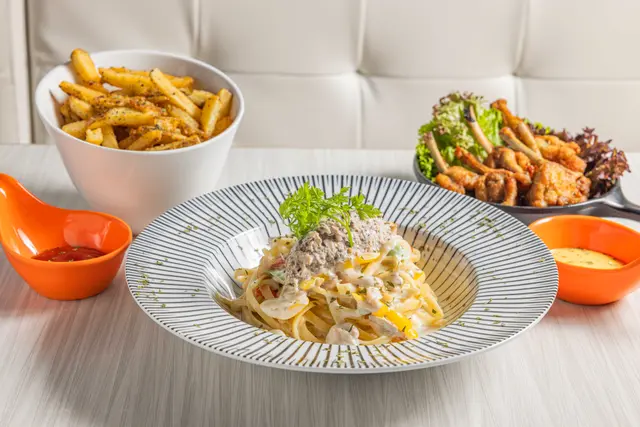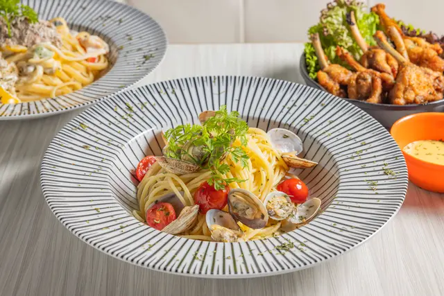 餐廳除咗環境熱鬧之外,仲有好多board game可以一路玩一路食,啱晒同朋友嚟chill吓!餐廳裝修感覺好warm。服務方面,店員都好nice同helpful,會主動介紹唔同嘅board game。最緊要係,呢度啲嘢食真係高質,唔hea㗎!香蒜白酒蜆肉意粉首先試咗香蒜白酒蜆肉意粉,蜆肉份量好多,而且好新鮮,意粉al dente,蒜香味同白酒味平衡得好好,唔會太濃太搶,好食!(必叫) 黑松露帶子鮮菌燴意大利飯跟住就係黑松露帶子鮮菌燴意大利飯,Risotto煮得啱啱好,creamy之餘又唔會太濕,帶子煎得香口,黑松露嘅香味好突出,成個配搭好夾!蜜糖雞翼叫咗蜜糖雞翼,雞翼外皮香脆,蜜糖甜甜哋,好惹味!甜品1) 開心果麻糬Tiramisu 必必必點!!開心果麻糬Tiramisu,呢個真係必試!Tiramisu口感幼滑,開心果味香濃,加上煙韌嘅麻糬,口感層次豐富!甜品2) 巴斯克芝士蛋糕巴斯克芝士蛋糕都好好味,芝士味濃郁,口感綿密,一切開仲有流心效果!水蜜桃乳酪味道清新,唔會太甜,啱晒解膩!可人兒 花茶…查看更多