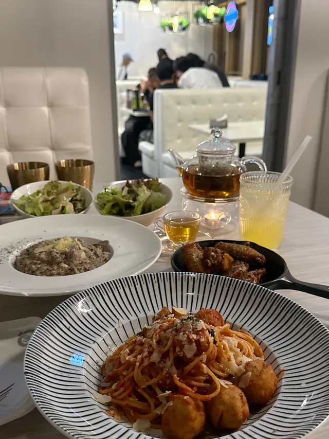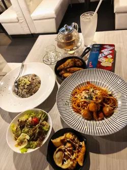 餐廳除咗環境熱鬧之外,仲有好多board game可以一路玩一路食,啱晒同朋友嚟chill吓!餐廳裝修感覺好warm。服務方面,店員都好nice同helpful,會主動介紹唔同嘅board game。最緊要係,呢度啲嘢食真係高質,唔hea㗎!香蒜白酒蜆肉意粉首先試咗香蒜白酒蜆肉意粉,蜆肉份量好多,而且好新鮮,意粉al dente,蒜香味同白酒味平衡得好好,唔會太濃太搶,好食!(必叫) 黑松露帶子鮮菌燴意大利飯跟住就係黑松露帶子鮮菌燴意大利飯,Risotto煮得啱啱好,creamy之餘又唔會太濕,帶子煎得香口,黑松露嘅香味好突出,成個配搭好夾!蜜糖雞翼叫咗蜜糖雞翼,雞翼外皮香脆,蜜糖甜甜哋,好惹味!甜品1) 開心果麻糬Tiramisu 必必必點!!開心果麻糬Tiramisu,呢個真係必試!Tiramisu口感幼滑,開心果味香濃,加上煙韌嘅麻糬,口感層次豐富!甜品2) 巴斯克芝士蛋糕巴斯克芝士蛋糕都好好味,芝士味濃郁,口感綿密,一切開仲有流心效果!水蜜桃乳酪味道清新,唔會太甜,啱晒解膩!可人兒 花茶…查看更多