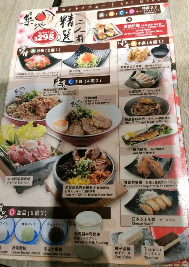 東京剛剛旅行回來,忘不了築地海鮮的味道,放工同朋友去sogo攞袋,路過銅鑼灣餐廳一帶,見到百利中心樓上鋪頭築地名字倍感親切,試一試無所謂。到達店前,未有人排隊。一坐低發現二人前的餐牌價錢很親民,298可以前菜,小食,主食飲品甜品都有。選擇的二人前餐牌。座位有提供消毒噴霧,好似回到疫情前用餐的感覺。