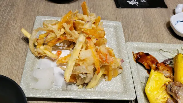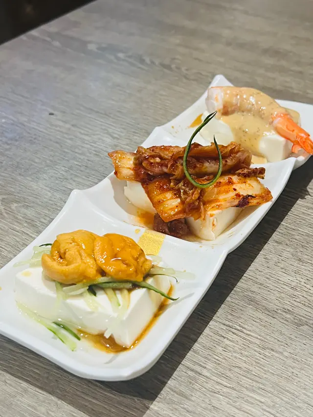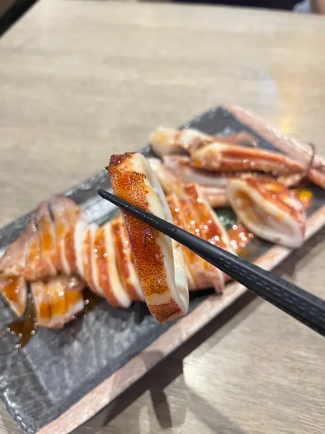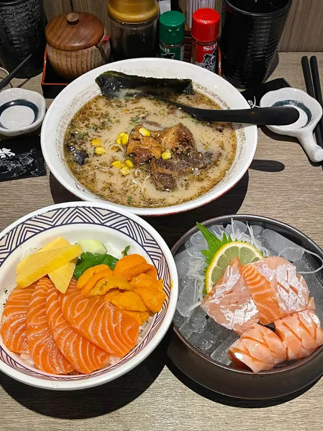 前菜蟹籽沙律,橙紅色的*飛魚籽搭配清爽的青瓜絲,咬下時有「啵啵」的爆裂感,增添鮮味和口感。 作為前菜沙拉冰涼清爽。 小吃的燒烤拼盤有豬肉,有烤菠蘿,主食前的開胃小食。烤雞肉落返七味粉多返啲燒烤口感。黑蒜油豬軟骨拉麵 - 發酵過後的蒜,有焦糖般的甜味和濃郁蒜香,少了生蒜的辛辣,剛剛擺低的拉麵顯而易見在拉麵上淋的黑蒜油,視覺衝擊見到黑色油在湯面上的效果,軟嫩的豬肋軟骨,軟骨部分入口即化,不需要太大力咬,而肉質不柴。有黑蒜拉麵,當然會飲原味湯頭,再攪拌黑蒜油,讓蒜香融入湯中,豬軟骨可搭配湯汁一起食用,我會加七味粉增添風味。因為重口味。牛肉野菜壽喜燒經典和風的菜式,湯是甜的,當然,港式的壽喜燒同日本當地不同。因為日本食法鐘意沾蛋液,而港版好多日式餐廳都會直接將蛋擺入鍋中。可能因為日本主打無菌生蛋,材料不一樣,不過就算在日本食的時候我都系成個蛋倒入去,再攞肥牛沾下,🤣成個湯都會有蛋液的味道。餐廳招待的服務態度好好,帶位的男仔會介紹餐品,而另有一位聽障人士服務雖然聽不到她的聲音,但對方用她的行動表達了對工作的認真,會主動過來執台上甜品。可想而知餐廳的包容也令用餐的我們增添不少好感。買單加埋一兩個人300零元抵食,如果有join會員好似仲有籌分。…查看更多