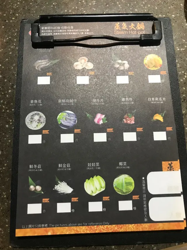 蒸鍋上的竹蓋子也是誠意十足。數分鐘後就可品嚐了!味道不及廚房已調味的食物,勝在好玩罷了⋯⋯愛吃海鮮不要錯過這份燒蠔、燒帆立貝
