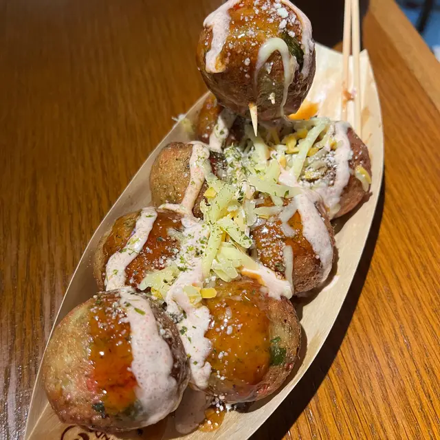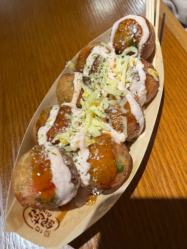 感覺充滿住要大快朵頤嘅氛圍。餐廳環境乾淨企理,裝修有啲文青風,地面嘅花紋地磚都幾有特色。 我叫咗份芝士明太子八爪魚燒,$48有8粒,價錢喺同類型美食廣場中算合理。呢個八爪魚燒一上枱,賣相就好吸引,表面淋滿咗粉紅色嘅醬汁,仲有芝士碎同明太子點綴。咬落去,外層煎得金黃酥脆,入面軟糯,八爪魚粒口感彈牙。芝士香濃,明太子咬落卜卜聲,增添咗唔少口感層次。同我之前喺日本街頭食嘅八爪魚燒相比,日本嗰啲多數只係簡單嘅醬汁同柴魚片,呢度嘅更有創意,味道更豐富。 不過,呢個八爪魚燒都有少少小缺點。就係食多幾粒會覺得有啲膩,可能因為醬汁同芝士嘅份量比較多。而且相比一啲專門做八爪魚燒嘅小店,佢個燒嘅火候可以再精準啲,有啲部分稍微有啲過火。 其實八爪魚燒呢種小食,一直都好受歡迎。細個去旅行嘅時候,每次喺街頭見到有賣八爪魚燒嘅,都一定會吵住要買。嗰陣食嘅可能只係好簡單嘅味道,但就係嗰種充滿住回憶嘅滋味,令我一直對八爪魚燒情有獨鍾。而今日食到呢個創意版嘅八爪魚燒,又為呢份情懷加添咗新嘅味道。 總體嚟講,呢度嘅芝士明太子八爪魚燒都值得一試,雖然有小瑕疵,但味道同創意都算唔錯啦。1…查看更多