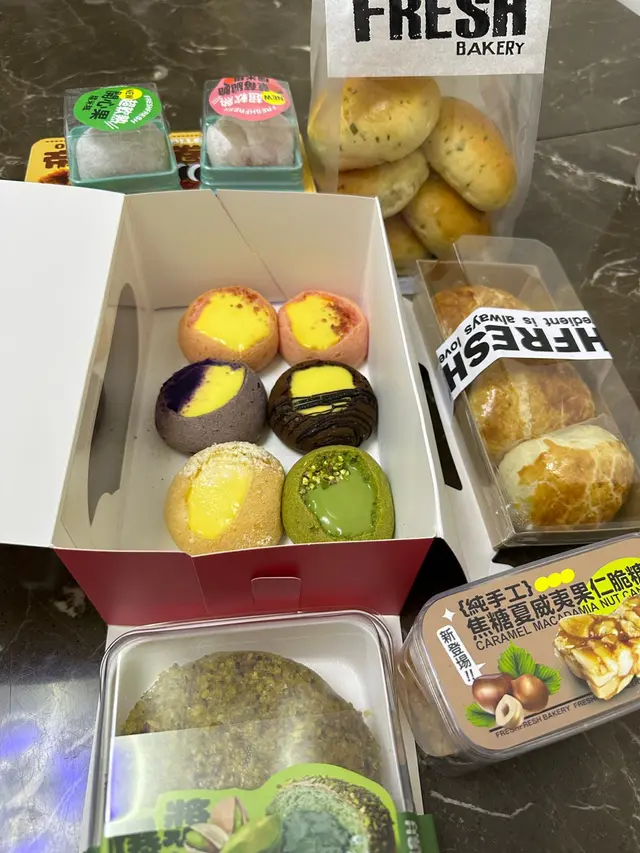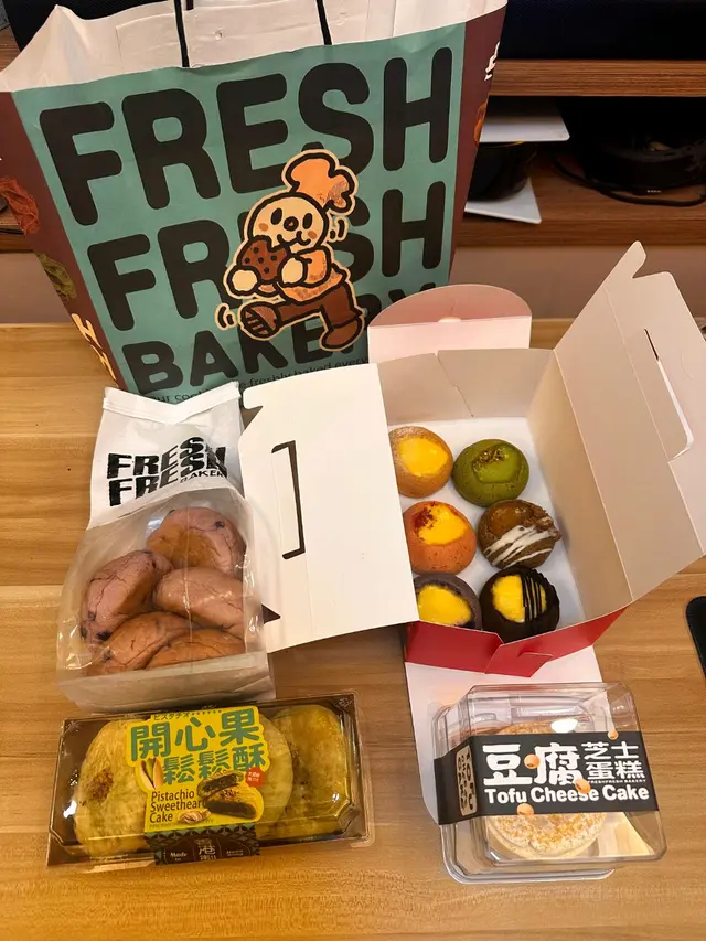 Fresh Fresh Bakery簡品堂🍞🍳主打親民價格,創意特別烘焙產品,不同的麵包和蛋糕款式眾多💥人氣產品多不勝數,以下幾款是我近期最愛♥️😊藍莓麻薯波波包 🍞藍莓麻薯波波包外皮鬆軟,咬開仲有爆漿藍莓醬麻薯食落QQ彈,酸酸甜甜做早餐非常唔錯麻糬QQ布丁🍮好多味道選擇,總有一款啱您布丁甜甜的,我最愛士多啤利味開心果鬆鬆酥🫓夠哂酥脆層次分明,食落有開心果,果仁夾雜好香脆蜜桃奶凍🍧兩層不同效果好靚,入口滑溜溜上層果凍晶瑩剔透,下層奶凍白雪雪Fresh Fresh Bakery 簡品堂🍞旺角港鐵旺角東站MKK 1號舖港鐵旺角東站 B2 出口, 步行約1分鐘…查看更多