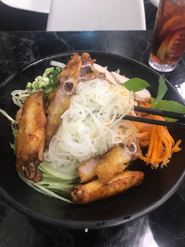 今日去咗天后行街搵食!近排都無咩心機無咩胃口,所以決定搵間light啲嘅嘢食,見到越南嘢清清哋,入去試下!同老婆各自叫咗碗粉,我食火車頭,佢叫咗香口啲嘅豬頸肉撈檬。火車頭好香,香料好足,而且粉嘅質地好彈牙,唔錯!偷咗老婆一粒豬頸肉試下,幾淋身入口即溶。而小食都唔想太炸,所以無揀春卷之類,要咗個蒸粉卷,都有驚喜!有啲脆脆嘅炸蒜點綴下,雖然係健康蒸但都有幾個層次,唔錯!飲品要咗咸柑桔水,都幾足料,好味嘅。支持小店,可以去呢間試下!查看更多