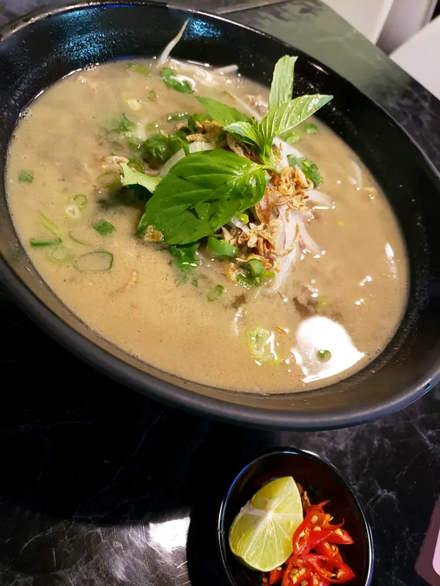 本來想去隔離個間,但問題係佢無我想食既生牛肉河,所以就去試下呢間!可能我去到係下午茶既關係,人就無咩啦(actually去走個時都有6-7成既)... 碗野都叫大碗既,但一放落黎個湯... 我真係唔知可以講咩... 我都有諗過會唔會可以"撥開雲霧見清湯"結果係無既... 但個味又唔覺真係咁濃... 如果係咁伏唔伏就自行決定啦~不過咁... 加8蚊可以有個青檸梳打就真係抵既!但我應該下次會忍下口,聽同事介紹試隔離個間架啦查看更多