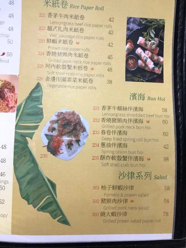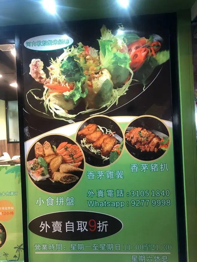 平時都好少係天后食晚飯,發現到一間未試過嘅越南菜餐廳,所以就同朋友直接入去試。睇到佢餐牌上嘅菜式好多都好吸引,係選擇困難之下都揀左幾個越南特色嘅菜色。首先上檯嘅係越式生牛肉河粉,開頭上檯嘅時候見到佢啲牛肉已經覺得幾吸引,食落都幾淋,加埋佢本身嘅湯底襯托,簡直一絕,而本身呢碗粉嘅量都比較多,我地兩個人食落都有啲吃力XD,性價比好高。然後上檯嘅係越式扎肉米紙卷,估唔到佢呢個米紙卷都好足料,有蘿蔔、粉絲、生菜等等嘅配料以外,仲加埋佢嘅主菜--扎肉,食落成個米紙卷都清新,完全滿足曬「食菜獸」嘅人。之後上檯嘅係越式海鮮炒金邊粉,未開始食都已經被佢嘅香味吸引住,睇得出係即叫即整。食落除左好有鑊氣之外亦都唔太有油膩感覺,而海鮮嘅配料唔止量多,種類亦都算多。而飲料方面,我地就叫左青檸梳打同凍檸茶,天氣熱,飲啲酸酸甜甜嘅飲品用嚟開胃同解渴就啱曬。成個餐廳都俾我覺得性價比超高嘅感覺,所以推薦俾鐘意食越南菜嘅朋友去朝聖!查看更多