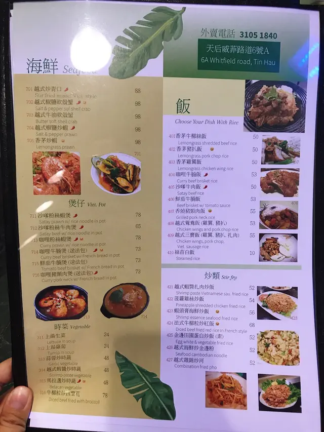 去完海洋公園都唔知喺附近食乜嘢好,所以就同朋友一齊去咗天后,咁啱得咁橋又見到有呢間越南菜既然咁耐都冇食過越南菜,所以我哋就決定入去試一試呢間街坊小店食越南野或者泰國嘢一定要食嘅,一定就係酸辣鳳爪!呢間鋪頭嘅酸辣鳳爪做到恰到好處,食咗一舊之後忍唔住要再食一舊,因為酸酸辣辣真係好開胃其他嘢食就包括有火車頭河粉啦,雞翼撈檬啦,香茅豬扒飯啦,全部都係我的至愛,每一樣都做到好街坊小店嘅味道大家不妨望一望佢個餐牌睇吓有冇興趣去試吓啦查看更多