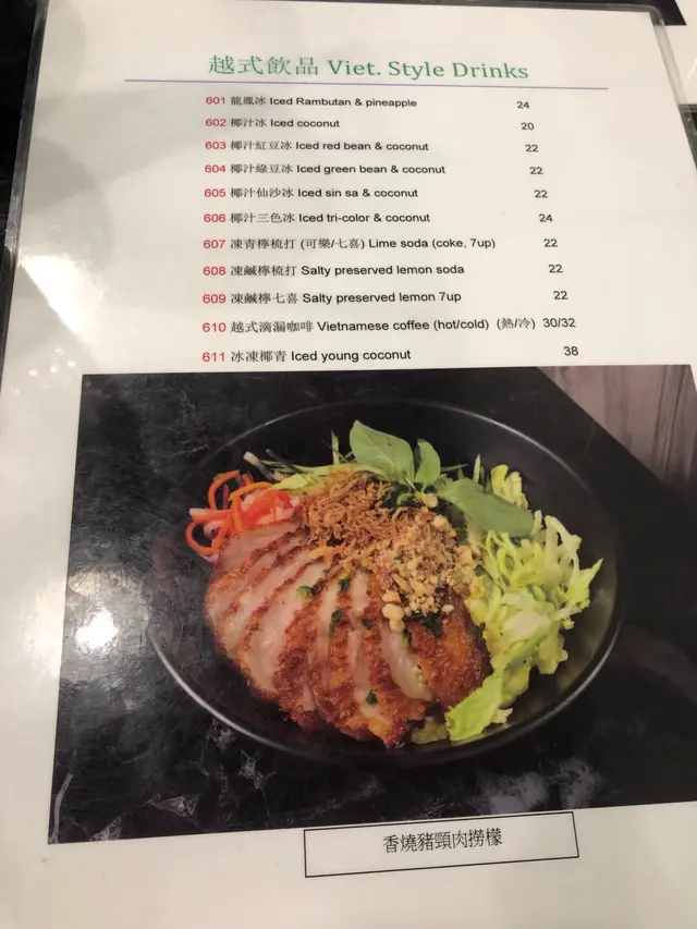 趕住18:30pm聽seminar,要拿拿聲食飽再跑去聽人講野...但眼見呢頭d食店都落晒場水盡鵝飛,除左店員唔見有食客wor...驚驚地都無計,剛好呢間「簡越Simply Viet」有個婆婆係度食緊下午茶,見有人就膽粗粗入去食la。同sis每人order一個tea set:生牛河走蔥+豬排撈檬+咸檸梳打+咸檸七。兩碗粉麵正常味道,生牛河湯底唔錯,撈檬個汁就淡左dd。Btw今日先知原來咸檸七本身係汽水,但個冰底仲會加糖水架!!下次大家order咸檸七時記得問問店員係咪仲會加糖水係冰底,if會建議走左個糖水,唔係就會勁甜!!查看更多