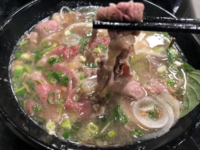 放lunch,選了越南餐館,點了越式生牛肉河粉和鹹柑吉蘇打不消3分鐘,河粉到,牛肉嫩,薄,來到後鮮紅轉沉色熟。河粉滑,到了嘴sh~ shS聲調味料挺香的。鹹柑吉蘇打的柑吉醃的好,味佳,跟蘇打混合成後味道挺fresh。查看更多