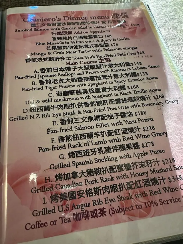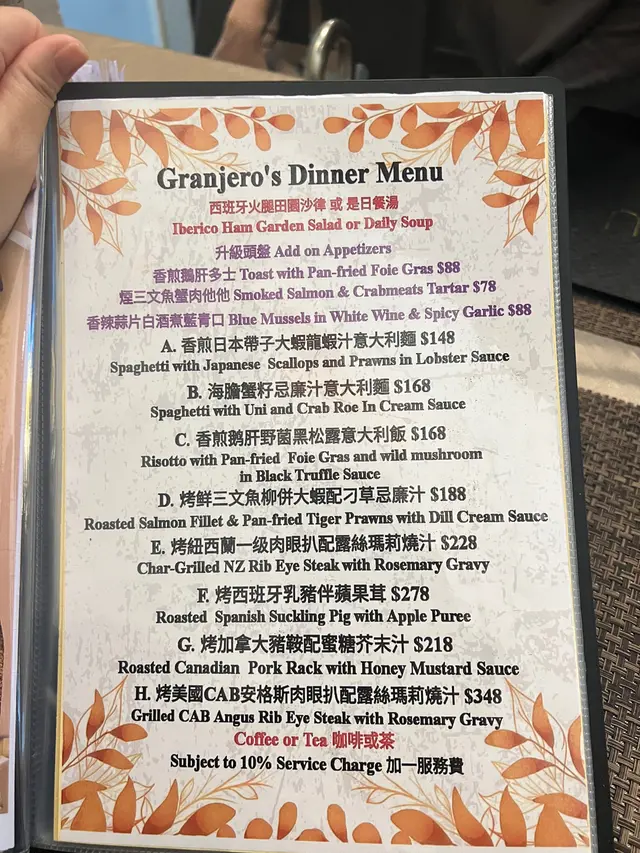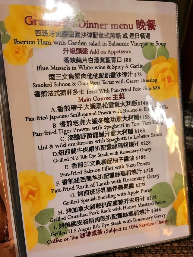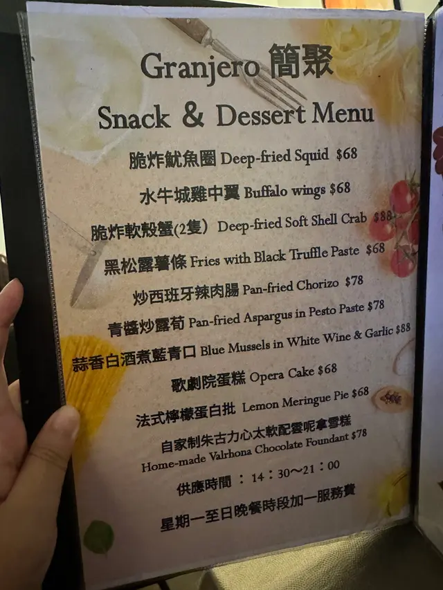 今日去左元朗另一間西式餐廳,叫做簡.聚。佢位置喺元朗廣場附近,佢有少量室外位置,可以帶埋毛孩過黎食飯。今晚未夠7點佢已經滿座,可見佢幾受歡迎。佢夜晚有dinner set menu,有餐湯/沙律+appetizer+main course,仲包飲品,人均大約二,三百蚊。佢呢排仲做緊promotion,如去餐廳慶祝生日或週年紀念,該月可享免費法式甜品一客及免費寫字服務(記住要提前預訂先有)。我地今日叫左: 🔸️生蠔拼盤 (銀堡壘×2 + 特級聖馬田×2)($68/each, 8/10)生蠔都幾新鮮。銀堡壘比較鮮甜,清新口感;聖馬田,入口帶有濃郁既海水味,口感爽身。兩隻口味各有特色。 🔸️西班牙火腿田園沙律配意式黑醋配餐包 (set, 8.7/10)好大碟沙律,沙律菜好新鮮,配埋帶微甜既黑醋好開胃。特別讚下個餐包,焗熱左又好軟熟,好香黑糖味,又有一粒粒麥好有咬口。 🔸️ 煙三文魚蟹肉他他配凱撒沙律汁(+$78, 8.8/10)呢個幾好味,好多蟹肉好有鮮味,蟹肉同煙三文魚之間既味道同口感都好配合,推薦。 🔸️ 香煎老虎大蝦冬蔭公意大利麵($158,8.8/10)我覺得呢個冬蔭公意大利麵有驚喜,首先佢嗰兩隻老虎大蝦超級香超級好食,意大利麵既冬蔭公味好特出又惹味,有少少微辣,十分好食! 🔸️ 烤加拿大豬鞍扒配蜜糖芥末籽汁($228,8.6/10)勁厚肉既加拿大豬鞍扒,中意食肉同蛋白質既朋友一定中意呢個,厚肉得黎一啲都唔肥,配埋焗蒜頭一齊食更加滋味。 🍨是日生日甜品:Opera Cake (FREE, 8.2/10)食完飯仲有甜品,滿足😁。仲係一個驚喜既生日celebration! 個甜品外型好靚,仲有生日歌聽😁 🍹凍鮮果茶 (+$22, 8.3/10)唔錯,唔會太甜,仲有好多桃肉添。 🍹洋甘菊茶 (+$18, 8.3/10) …查看更多