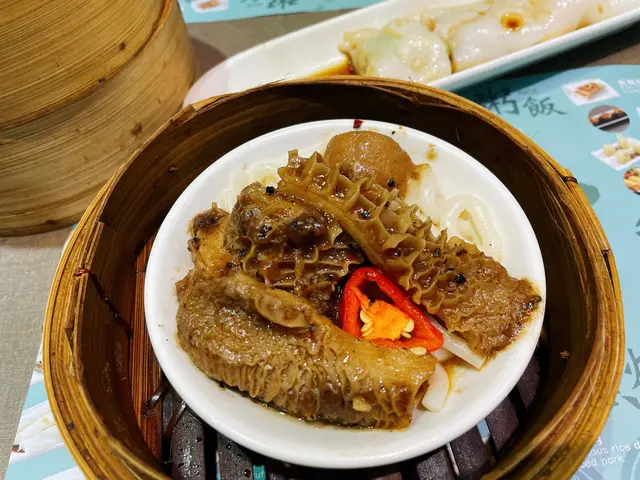 早餐食得飽得滯,lunch想食輕量d,就去左呢間《籠太子》飲茶。總共試左2樣野。原隻鮑魚燒賣鮑魚同5蚊銀差唔多大,但食落唔知點解酸酸地,燒賣本身肥肉較多,味道同一般酒樓冇咩分別。鳳爪排骨飯首先味道係唔錯,但鳳爪好細隻,排骨有大半係肥肉....而且d飯仲有d碎骨,牙都差d咬崩.....極需要改善。2樣野都一般,但反而任你食既辣椒油幾出色,唔係好辣,好香口,d蒜同蔥頭炸到脆卜卜,就咁攞黎撈飯都夠哂味👍查看更多
