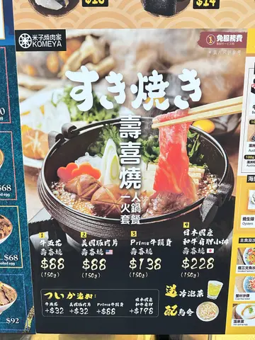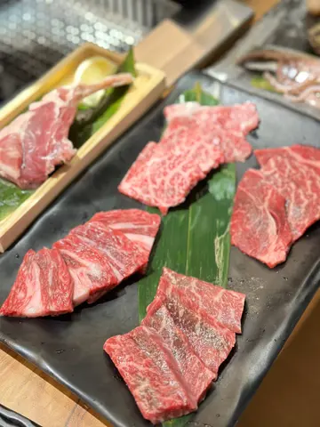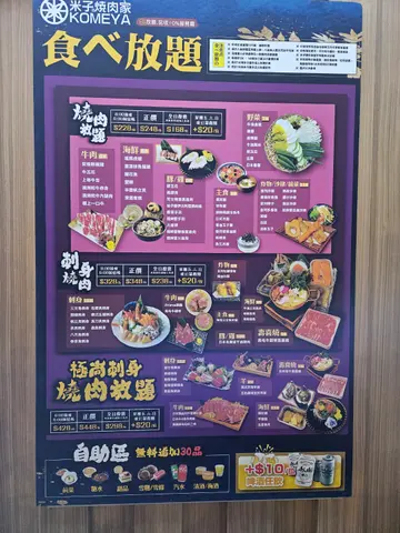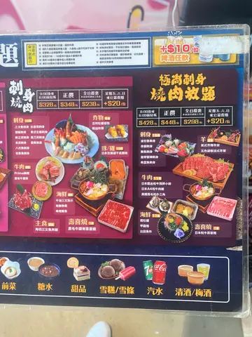 見到網上平台有限時買一送一優惠,晚市燒肉放題$199/位,另外每位收原價加一即$39。見網上平台評價唔差,加上喺粉嶺開左咁耐都未試過,決定星期五去食🤔。BOOK左星期五晚上8點,估唔到全場爆滿😯 即刻有少少期望🤓望完個餐牌後發現,餐廳本身只有$248、$348同$448三個餐,根本我地呢個聲稱原價$399嘅餐🤔。網上平台呢個特別餐,係可以食到$248所有野同$348嘅刺身,另加壽喜燒湯底。一坐低,職員就送上每人三片牛肉,由於無講係咩部位、等級。牛肉油花唔差,入口油脂爆棚!!😏 之後任食就當然無呢個等級嘅牛肉啦😅除左已經售罄嘅厚牛舌外,澳洲和牛肉腿肉、安格斯板腱、牛五花、一口牛都係任食。不過質素就麻麻。海鮮方面,除售罄嘅鹽燒虎蝦外,仲有非常鹹嘅壼漬魷魚鬚、鯖花青、蟹柳、同埋我個人覺得算係比較好嘅急凍半殼帆立貝。枱上有一樽已調味蒜蓉,加埋落去一齊燒就最正😋。豚雞方面選擇唔多,我地只試左黑豚肉、無味嘅芝士雞肉、兩款無醃到入味嘅手羽、好難食嘅兩款火雞腎。除左可以喺出面拎嘅生菜盤外,QR都可以點半油金菇、髀菇、好酸嘅菠蘿、翠瓜、牛油粟米等。主食叫左正正常常嘅胡麻烏冬、櫻花蝦蔥飯、蔥玉子飯。呢度嘅炸物完全唔掂,炸到好深色、好乾、好硬、好界口….😣呢個餐最好嘅係刺身,即係$348個餐嘅刺身全部都叫得,當中甜蝦同赤蝦都唔錯😋。如果想食又熱又濕嘅野,都仲可以點壽喜燒,不過跟嚟果盤牛肉真係連佳寶最平嘅肥牛都不如😂自助區除左無糖盒裝茶外,仲有啤酒;甜品除左杯裝啫哩外,仲有好稀嘅紅豆沙、三款牛奶雪糕杯;前菜都有螺肉、中華沙律、泡菜、四季豆。總結,食物質素麻麻、選擇唔多、餐廳煙氣味大,不過上菜快,又會主動換網。人均$240,試一次就夠。…查看更多