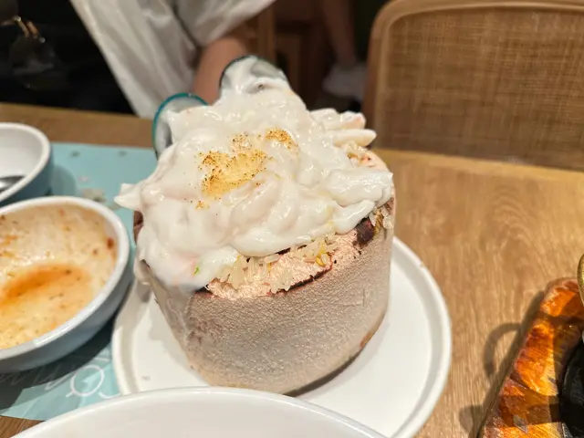 🍚原個椰青海鮮焗飯($102)本來一上枱嗰陣以為上邊白色嗰啲係白汁,食落先知應該係椰漿