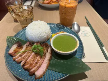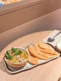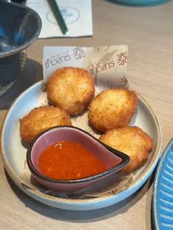 ⁂⁎◝#荃灣🇭🇰 新開精緻抵食泰國菜⁎◜⁂.是但係多野食既荃灣廣場搵左一間泰國野 唔洗等位就入左去食 環境唔錯 坐得都舒服食物質素都ok 價錢唔貴😗.✧米泰生蝦 $88鍾意佢用每個細玻璃杯裝住啲醬汁浸住隻生蝦🦐一黎擺盤靚 二黎生蝦可以更加入味醬汁調味唔會太辣 酸酸辣辣好開胃.✧啖啖蟹肉咖喱 配薄餅 $158蟹肉同咖喱既比例唔錯 每啖咖喱都配到蟹肉唔會得少量蟹肉 而且薄餅本身已經配埋唔洗額外加錢 薄餅都有四大塊 已經剪開左一半😆.✧馬拉盞炒通菜 $72不過不失既馬拉盞炒通菜 份量都幾多 幾大碟食落少少辣 又唔會蓋過本身蝦醬既鹹味 幾惹味.✧香蕉烤餅配椰子雪糕 $72烤餅係好煙韌既口感 入面都包住好多香蕉唔會太甜 雪糕就無乜椰子味 唔夠出.✧香茅青檸薏米水 $36好飲👍🏻 薏米水唔太甜 薏米都煮得夠腍有咬口 好岩夏天飲可以消暑解渴!..*・゜゚・*:.。..。.:..。. .。.:*・゜゚・*𝘙𝘢𝘵𝘪𝘯𝘨: 3.5/5𝘙𝘦𝘷𝘪𝘴𝘪𝘵: maybe*・゜゚・*:.。..。.:..。. .。.:*・゜゚・*𝘍𝘰𝘳 𝘮𝘰𝘳𝘦 𝘪𝘯𝘧𝘰𝘳𝘮𝘢𝘵𝘪𝘰𝘯:📍米泰🗺️荃灣大壩街4-30號荃灣廣場3樓.…查看更多