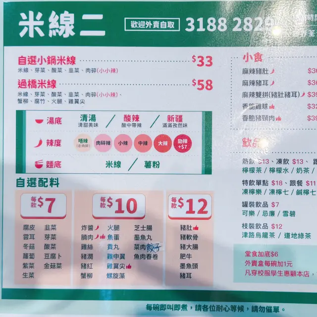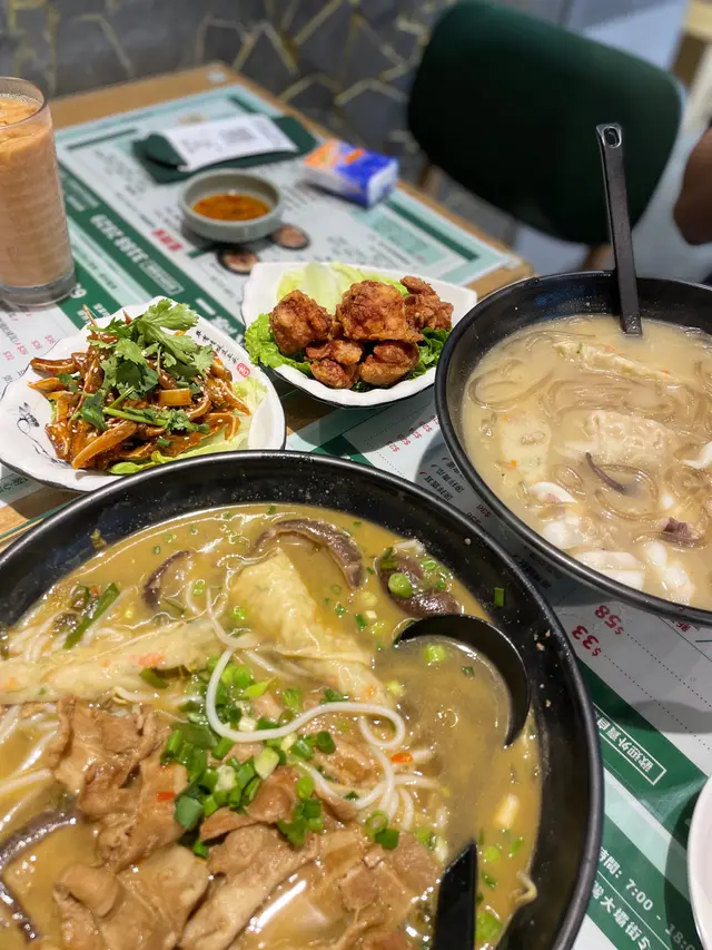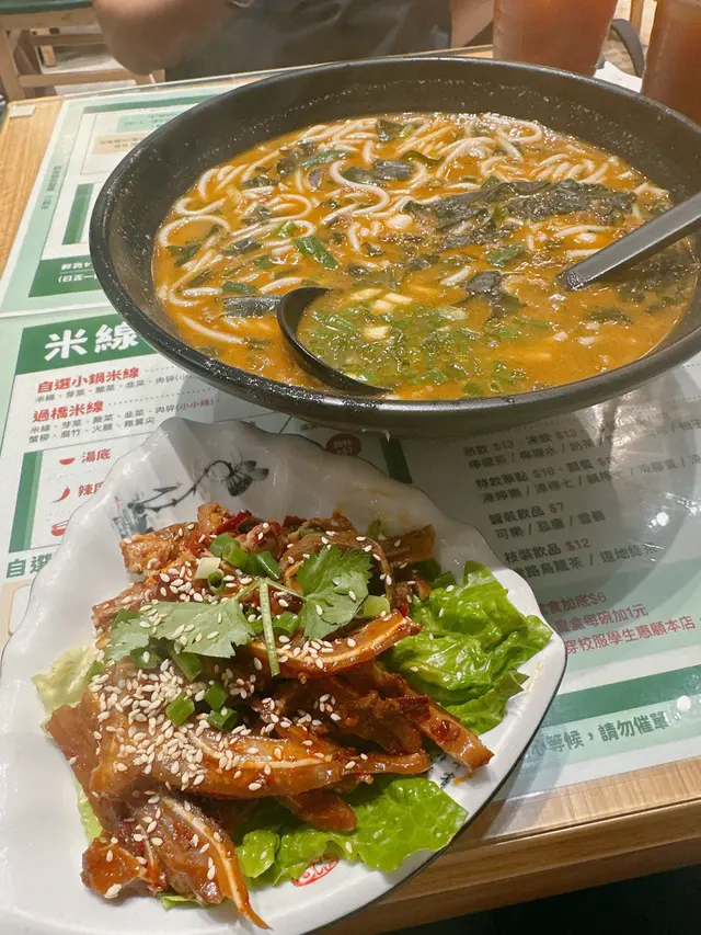 荃灣有好多間米線店,前排見到呢間新開嘅一於去試吓🤩 湯底有清湯/酸辣同新疆 3個選擇~ 我哋就試左酸辣同清湯加辣,建議揀酸辣味,酸同辣嘅比例岩岩好而且湯底幾濃,酸味突出,小辣都係舒服嘅辣度😉 碗米線一嚟到大碗到有啲嚇親,米線岩岩好唔會過冧/過硬🤓 自選料方面推介腩肉,好入味,偏瘦啲但幾冧身😗 墨魚🦑頭都幾鮮甜有咬口😛 另外試左魚肉春卷同餃子就普通啲~小食方面叫左炸雞同麻辣豬耳,炸雞望落金黃色如果再多啲肉汁同濃味啲就更好;豬耳調味幾特別帶啲薄荷嘅清新味道,食落好爽脆😛 奶茶好夠味幾有水準😙…查看更多
