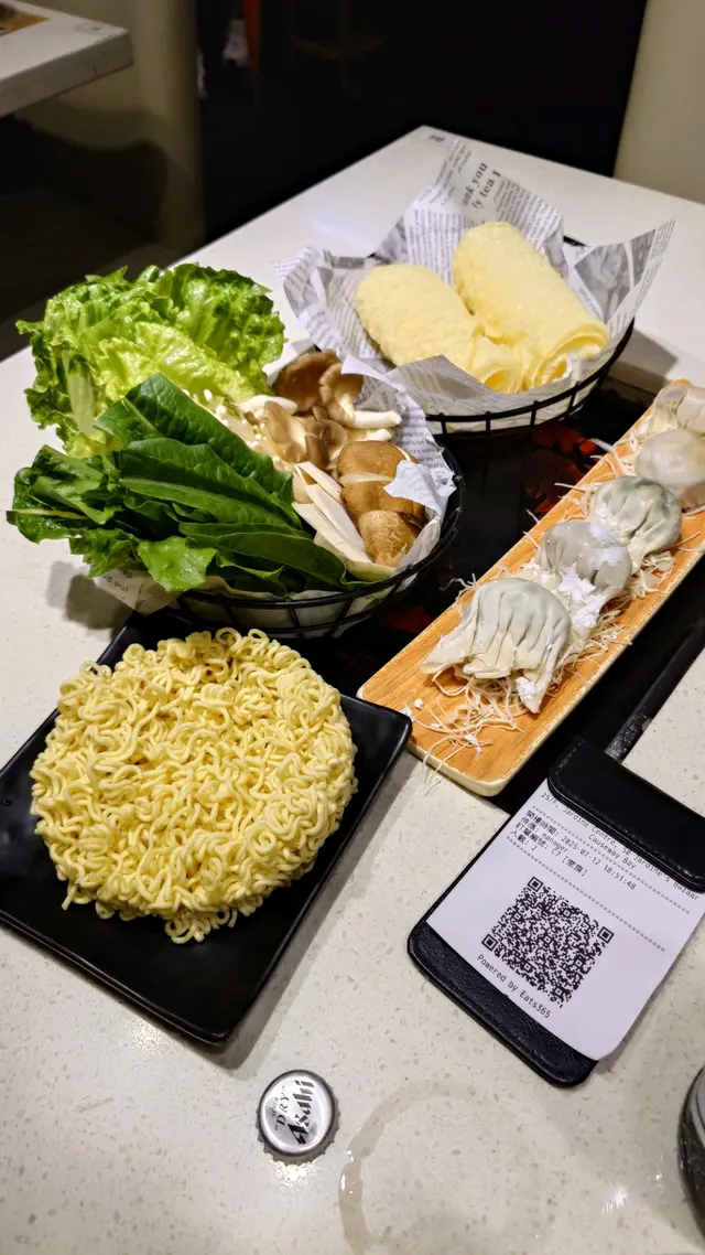 嗰日同屋企人去咗間火鍋餐廳食午餐。入座之後,我哋就點咗店員送上嘅金湯桃膠花膠雞湯。雞湯色澤金黃,擁有濃郁嘅雞香同微微嘅膠質感,桃膠滑溜,花膠厚實,每啖都暖入心🥰首先落鍋嘅係霜降牛板腱,牛肉帶住細緻雪花紋,入口柔嫩帶嚼勁,咬落肉汁四溢,真係好滿足。之後試咗和牛餃,外皮薄而煙韌,內餡係爆汁嘅和牛肉餡,一咬開啲牛油香就充滿咀嚼之間,好好味。海鮮方面,海鮮拼盤令人眼前一亮,沙白鮮甜帶少許海水味,口感爽脆;脆鯇魚片薄切得剛剛好,唔使煮太耐已經滑溜可口,仲保持住淡淡魚香;虎蝦彈牙又鮮甜,每隻都帶住大海嘅鮮味,唔使多餘調味已經好好食。最後配返杯藍檸檬梳打,淡淡檸檬酸同氣泡感,清新解膩,為呢餐豐富嘅火鍋宴畫上完美句號!