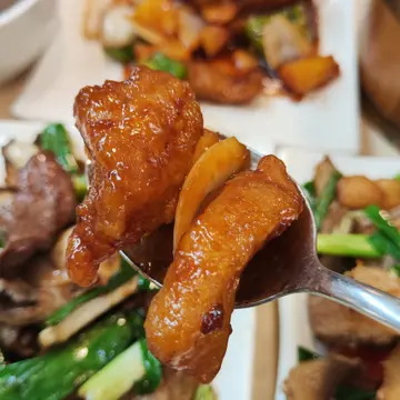 。外出吃飯,當然要點些在家中難作的菜式,就好像這道「山楂醬排骨」($95)是一例,太多功夫了。排骨入口保持外脆內軟,咬下去肉質鬆化,而其靈魂在於這山楂醬汁,真有山楂在內,酸酸甜甜,而那份酸味很沉實,一點也不嗆喉