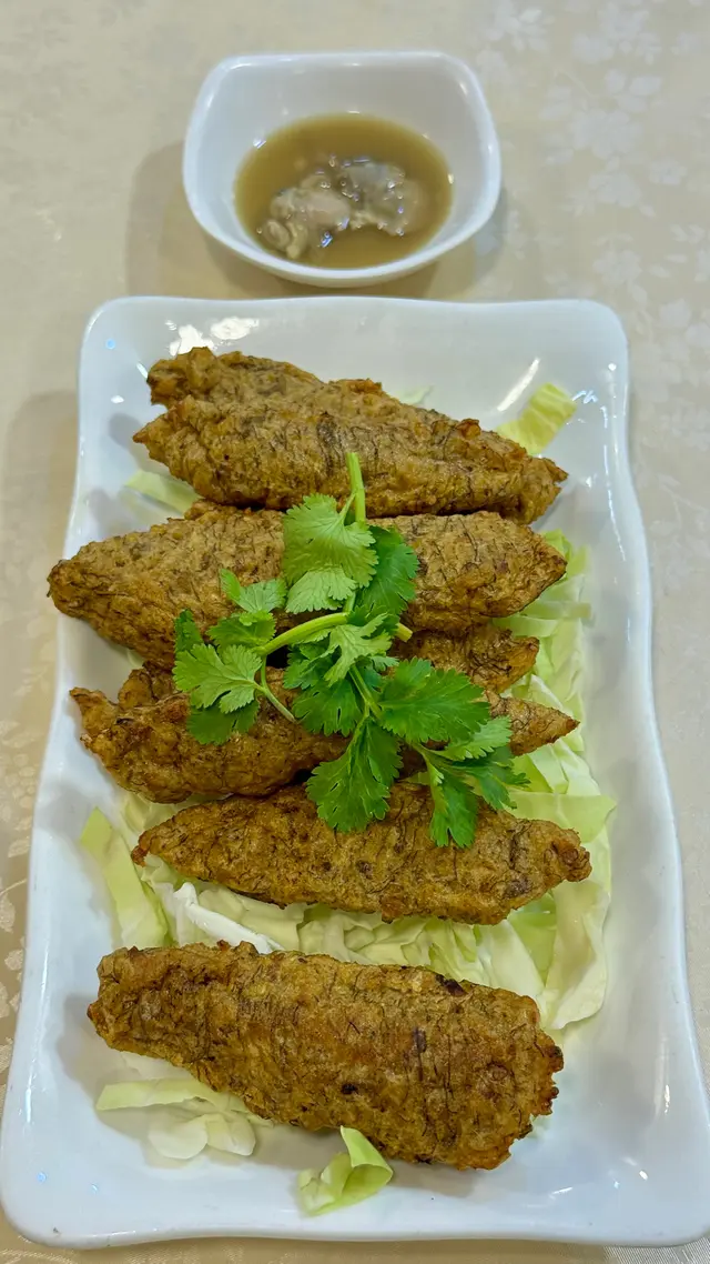 。外出吃飯,當然要點些在家中難作的菜式,就好像這道「山楂醬排骨」($95)是一例,太多功夫了。排骨入口保持外脆內軟,咬下去肉質鬆化,而其靈魂在於這山楂醬汁,真有山楂在內,酸酸甜甜,而那份酸味很沉實,一點也不嗆喉