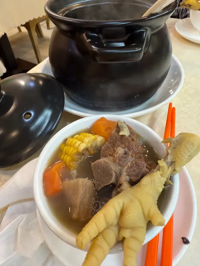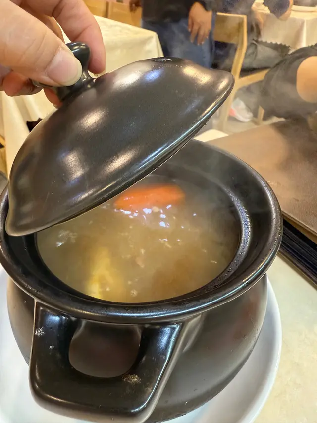 。廣東人最喜愛喝湯,所以,先來「老火例湯」,分了大煲$148、細煲$108及碗裝$58,我們這個是細煲,一來到熱氣騰騰,而是晚是青紅蘿蔔粟米煲豬骨,甚有住家風味,而湯頭深沉色,味道非常濃郁,湯料十足,真好喝
