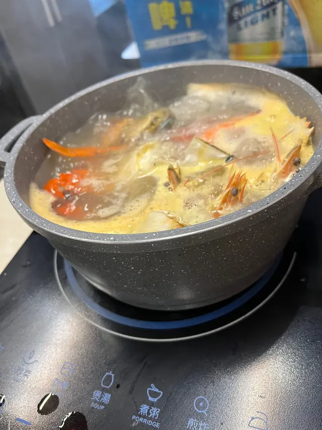 非常好食嘅粥底火鍋,d料都係用時令海鮮,所以有d會因時節而轉其他,佢有埋指引話比你聽d海鮮要先落邊d恰幾多秒咁,仲提供埋秒表比你計時,不過由於成班人都係一d心急人黎 所以都係冇計到時,用感覺去食🤣🤣佢d份量係跟人頭比,所以人多食d海鮮就多癲食完都食唔到個粥🤣🤣🤣最精彩係個粥,所有海鮮嘅鮮同甜落晒去d粥到,食落去好滿足呀,不過記得唔好恰太多肉類,因為d肉味落左去d粥到就食唔到鮮味,破壞左個味道查看更多