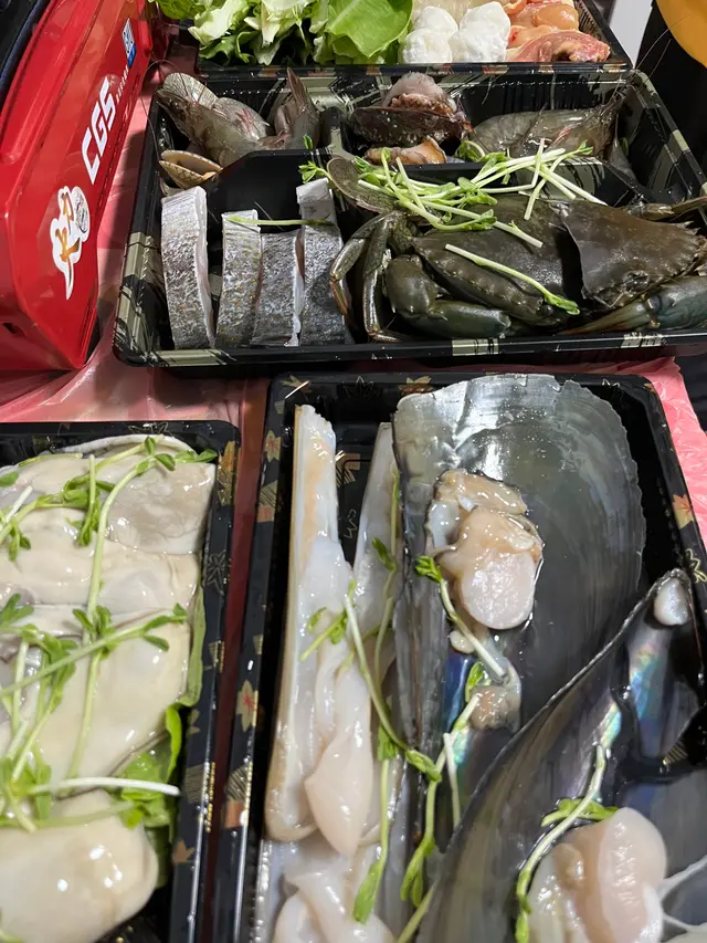 本來想食鍋心,因為冇位,過左呢間小店食。星期六 $218+10%.1️⃣ 7款海鮮:魚、蟹、蝦、蜆、蟶子、鮑魚、帶子2️⃣ 5款配料:豬肉片、牛肉片、一口牛、牛柏葉、娃娃菜.食材味道OK,然而份量真係細,每人只得:👉🏻 2塊魚、2-3隻蜆、半隻蟹、2隻蝦、1隻蟶子、1隻鮑魚、1隻帶子👉🏻 3片豬肉、3片牛肉、2塊一口牛、2片牛柏葉、半棵娃娃菜、一塊粟米.嚴重唔夠食。加上主食係粥,消化快,食完5分鐘已經落返5-6成飽 💔 要去食多個甜品先夠 😢.如果想加料,都幾貴,一份娃娃菜已經要$32。😅 前兩日我食快樂小羊,鋪頭超靚裝修,加半份娃娃菜先$11,有一大碟。一比較真係輸幾條街 😅.飲品都貴,冇供應茶水,叫野飲最平要十幾蚊。.店內環境一般,茶記裝修。座位逼,兩個人只比了半邊檯 😢.總括而言,在太和區收取此價錢,冇環境可言,又食唔飽人,就算味道OK,都真的不太滿意 😢💔查看更多