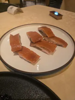 2025夏季香港餐廳周 HK restaurant week(7月29日至8月31日)剛開始,超過300間餐廳可以優惠價享用精選餐牌。小試牛刀,選了這間粤藝館,入到去發現同幾年前叫麒藝館入面的裝修一樣,只是改咗名。食咗Elite Lunch menu $248/位,等於了平時的午市套餐的五六折左右。第一道菜:點心(四選一)香茜餃第二道菜:竹炭脆豆腐第三道菜:西班牙栗子豬焦香叉燒第四道菜:粵藝老火湯(無味精)第五道菜:(二選一)宮廷一口咕嚕肉第六道菜:濃湯杞子百合浸菜苗第七道菜:櫻花蝦海皇炒飯第八道菜:粵藝特色甜品頭4道菜的上菜次序跟餐牌次序不同,先來叉燒、老火湯(紅蘿蔔粟米馬蹄豬展湯),再來竹炭脆豆腐及點心香茜餃,咕嚕肉開始的主食嘅次序就按餐牌次序出菜了。最喜歡的是咕嚕肉及櫻花蝦海皇炒飯,咕嚕肉的脆皮做得很脆、很香口,櫻花蝦海皇炒飯好足了,而且炒飯有鑊氣,唯一是偏油了一點。其他菜式就是一般般啦,唔係好差,但又未去到好出色。另外要茶水每位$25及小食$25,及+1服務費,埋單要$666。…查看更多