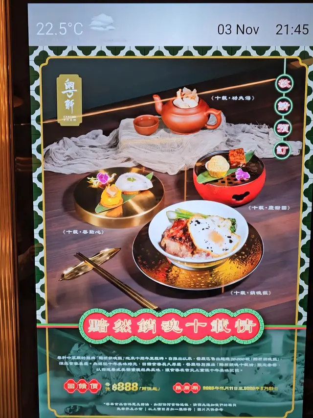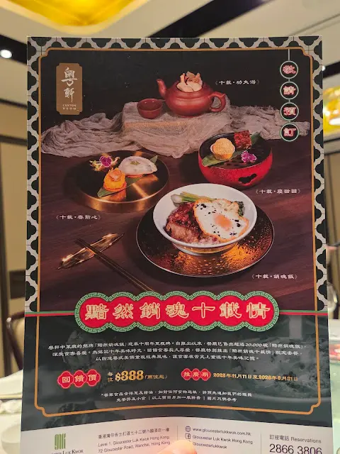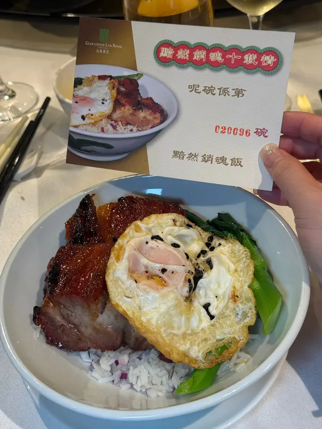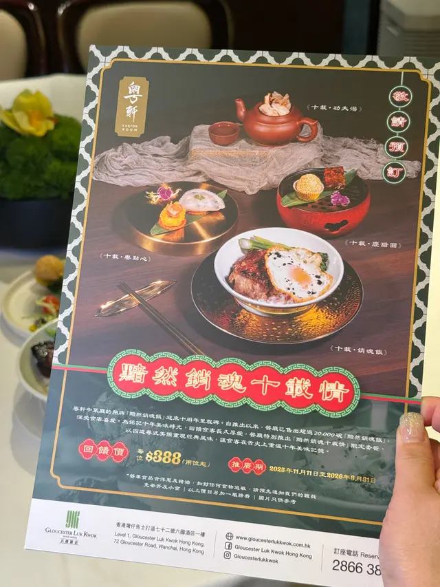 好友邀約到這間位於灣仔六國酒店內的中菜廳「粵軒」飯聚,一起品嚐它為了慶祝其招牌「黯然銷魂飯」推出十周年而特別設計的「黯然銷魂十載情」限定套餐($388/位,兩位起,已包茶芥小食)。之前一直不曾在這中菜廳吃過它的招牌「黯然銷魂飯」的我,自然樂於赴會,一嚐這限定套餐。這限定套餐共有4道菜式,每道菜式均特別地以「十載」命名:第一道菜「十載‧功夫湯」其實是五指毛桃燉螺頭,再輔以其他配料,經慢火細煨後,然後以小紫砂壺奉客。這湯湯味清醇,味道濃淡適中,作為這套餐的首道菜式,都算不錯。第二道菜「十載‧粵點心」包括兩款點心,獨一無二的「六姐粉果」原來源自酒店老闆昔日家廚六姐,餡料與現在其他地方吃到的粉果大有不同。這晚的「六姐粉果」口感豐富,餡料味道亦佳,的確是一道出色的點心。另一款點心「鮑魚燒賣」雖然沒有那麼特別,但油潤飽滿的燒賣,以原隻鮑魚作配,好吃之餘,也能增加一點名貴感。喝過燉湯,吃過點心,主角「十載‧銷魂飯」緊接上桌。這來自星爺周星馳領銜主演的賣座電影《食神》的「黯然銷魂飯」,歷經多番改良,用料一絲不苟,兩大件口感鬆軟的蜜汁叉燒、一隻燶邊蘭王煎太陽蛋,加上嫩綠青菜和少許紫洋蔥,飯面上再澆以已有五十年生產歷史的「御品醬油」,吃時先把叉燒和青菜夾開,再用筷子把蘭王蛋的蛋黃刺穿,讓流淌的蛋汁與鮮味的醬油混和,一起沾到晶瑩的米飯上,然後用匙羹舀來吃,每口都是令人滿足的味道。而叉燒、煎蛋和青菜就化身成最佳的配角,讓人不禁有「黯然銷魂者,唯此飯而已」的感覺。最後的一道菜式「十載‧慶甜圓」跟「十載‧粵點心」一樣,都包括兩款甜點。「黃金煎堆仔」外酥內糯,「桂花紅豆糕」香甜清爽,各有特色,而我就喜歡香口的「黃金煎堆仔」多些。第一次品嚐「粵軒」的「黯然銷魂飯」,果然名不虛傳,水準極高,現在如果吃這「黯然銷魂飯」,還有一張印有編號第幾碗在上面的紀念卡送贈客人,而我收到的紀念卡上面就寫著我吃的是第20155號的「黯然銷魂飯」,這紀念品都算特別和有心思。這次酒店推出的「黯然銷魂十載情」限定套餐將會供應至明年3月31日,想一試的話,大可在供應期內找一天去試試呢!…Read More