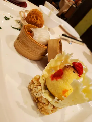 疫情期間真係有好多酒店餐廳做優惠這間老牌中菜廳亦推出指定菜式半價優惠主餐牌菜式則享指定信用卡8折蜜汁叉燒拼龍井茶燻乳鴿 | $153 (半價價錢)一上枱已經超濃的煙燻香氣乳鴿的茶燻味極濃 有點兒過嗆乳鴿已經拆肉 肉質嫩而不鞋不乾叉燒蜜汁味偏淡反而好濃玫瑰酒香梅頭肉肉質鬆軟肥瘦均勻夠juicy但味道上我會喜歡少一點酒味多一點蜜汁這個雙拼有半價好抵食大澳脆炸雞 | $134 (半價價錢)係中餐館一見到脆、炸、雞就自動以為係炸子脆皮雞🤣上菜時先驚覺原來係炸雞粒不過用上大澳蝦醬醃過再炸 充滿鹹香味再加上冇用炸粉都依然香脆好好食蜜汁燒鱔 | $188 (正價)雖然係正價但都推介鱔肉質超級爽彈 最正係個皮燒到超級脆脆到隔離都聽到 加上甜甜的蜜汁好惹味雪嶺紅梅映松露 | $148pp (正價)見餐牌話係得獎菜就試吓賣相幾靚 下面係3層層次分明 蛋白甘荀的甜 蔬菜汁 蛋白 色彩鮮艷得來又好食特別係個甘荀的香甜提升整體鮮味龍口感彈牙配勁香黑松露其他菜式就普普通通 正常發揮菠蘿咕嚕肉 | $84 (半價價錢)蝦籽野菌紅燒豆腐 | $74 (半價價錢)…查看更多