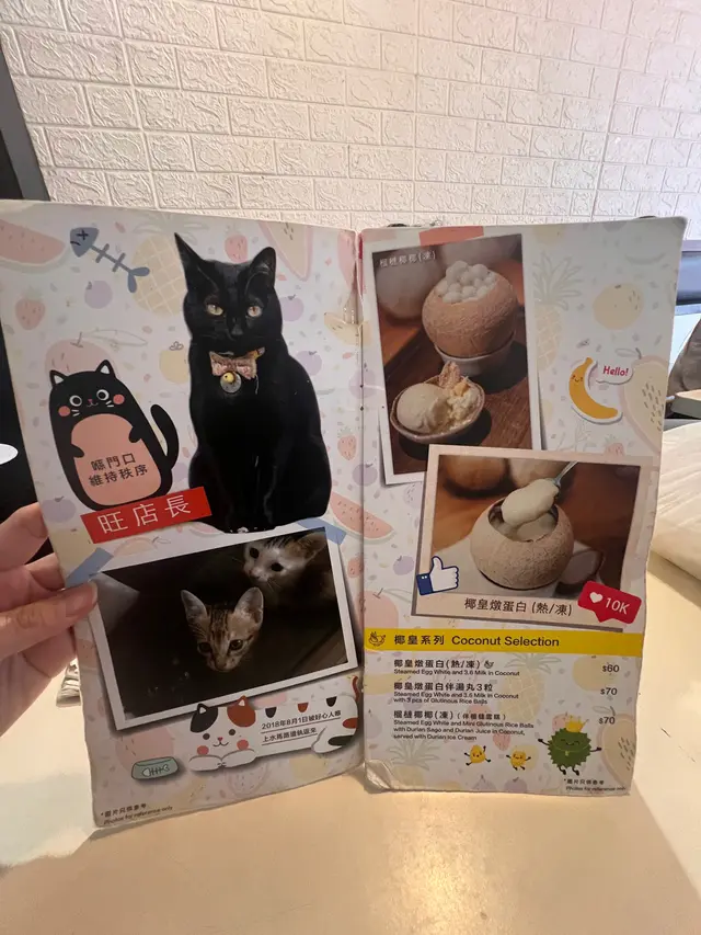 愛貓人士必去的糖水店 有兩隻貓店長 陪你一齊食糖水 貓店長阿旺 超嗲超親人 令糖水甜上加甜朱古力心太軟 -可以自選兩款不同味雪糕 心太軟切開即刻流心!朱古力味超濃郁外層微脆入面軟滑 甜而不膩~夾埋曲奇同芒果雪糕凍食冰火交融邪惡到極但真心滿足紅豆沙 -紅豆沙煲到起晒沙!甜度啱啱好,陳皮香好出仲有啲蓮子夠粉糯~熱辣辣食好暖胃,傳統糖水果然穩陣芝麻湖+芝麻湯圓 -芝麻糊磨得超滑溜,濃郁芝麻香唔會苦,甜度剛好!湯圓皮薄餡多,流心芝麻餡爆出嚟勁滿足爆芒 -芒果布甸滑嘟嘟,配上新鮮芒果同金柚肉爆爆珠同寒天粒咬落啵啵聲好過癮!小丸子煙韌,芒果汁甜而不膩,再加埋芒果雪糕口感同味道層次爆燈,芒果控必嗌!芒滋枝 -芒果布甸滑溜香甜,新鮮芒果肉多汁金柚微酸好開胃!小丸子煙韌,西米露咬口十足淋上濃郁芒果汁成碗冰涼透心…查看更多