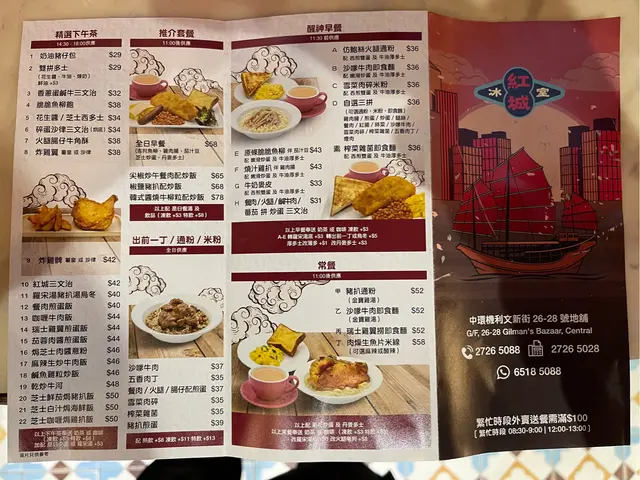 紅城冰室 (中環) 網址: https://s.openrice.com/QrbS0rVS800 地址: 香港中環機利文新街26-28號地舖 電話: +852 27265088
