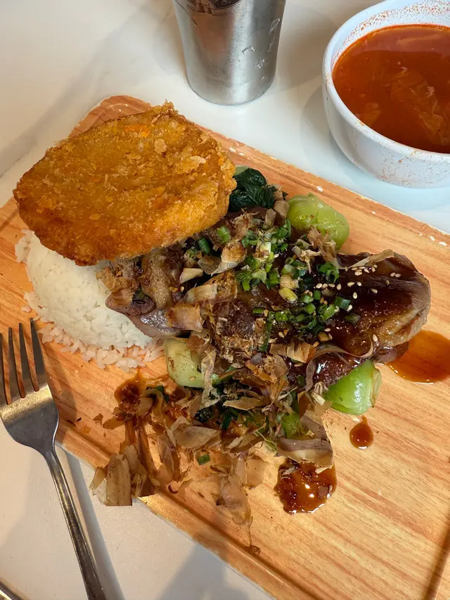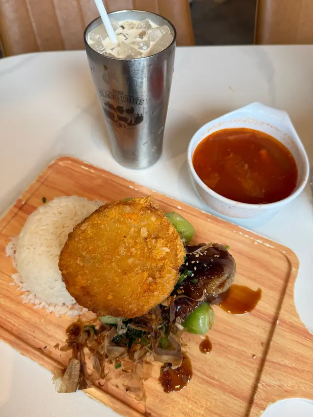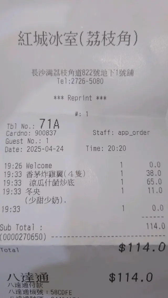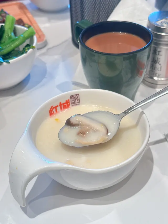 約左人到D2睇戲,睇前諗住食啲野,商場入面幾乎無店咁早開,到街上搵食吧,遠遠見到紅城,大大間茶記外觀唔錯,試呢間吧。無枱得返吧枱,ok啦求其食下啫,各自各掃code落單先。咦,原來仲有早餐喎,三十幾蚊係平嘅,唔怪得咁多人。⭐沙嗲牛肉公仔麵配西煎雙蛋&牛油多士自己落左呢份餐,經典港式早餐配撘😆沙嗲牛……幾失望,無沙嗲味之餘仲帶點酸酸辣辣??奇奇怪怪的🤔前雙蛋無特別啦,牛油多士塗左好厚牛油,正。⭐沙嗲牛肉公仔麵配雞肉腸併炒蛋&牛油多士朋友點左呢樣,落完單發覺大家點差唔多嘅野😆哈哈。佢份滑蛋幾吸引,腸仔正常味啦。⭐熱杏霜心有靈犀居然一齊點咗熱杏霜😝但舖頭應該好少人飲呢樣,我覺得個水吧師傅唔識得沖,落咗勁多杏霜粉,兩杯嘢結他他程啫哩狀,似係食緊杏仁糊多過飲緊杏霜,某程度上嚟講係咪叫抵咗?畀咁多杏醬粉你飲😆食物味道一般,店內環境一般,但價錢夠平,所以人多都係有道理嘅。BTW,自助落單自助畀錢,除咗上菜有人手之外,幾乎全程見唔到伙記。…查看更多