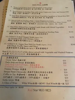 成日聽朋友講話有間懷舊西式餐廳好掂,終於約到時間一齊試。入到去滿滿的舊香港情懷,復古燈光配木枱木椅,瞬間穿越返70年代老香港西餐廳,氣氛滿分!款款都想試,最後索性豪啲,一次過叫咗成枱嘢。-🥩 鐵板美國牛封門柳(鮮菇燒汁)$130封門柳夠晒淋身,七安士份量啱啱好,肉味濃得嚟唔會韌。鮮菇燒汁撈埋薯蓉一齊食,-👑 美國安格斯牛肉眼扒(黑松露燒汁)$20010安士超大塊!肉眼扒脂肪分布靚,切開仲係粉紅色,黑松露燒汁超濃郁,每一啖都係奢華享受。呢個價錢好抵食!琺瑯鍋慢煮牛面珠墩肉配紅糙米飯牛面珠燉得夠耐,夾起嚟成舊肉都係入口即溶,汁收得夠靚,仲有隻溫泉蛋撈飯一流。紅糙米飯煙煙韌韌,唔會太硬,配埋個汁一齊食真係好啱。*update 5-course set $40 跟沙律杯、餐湯、餐飲、甜品🥗 凱撒沙律沙律菜新鮮爽脆,芝士味香濃,煙肉煙韌有咬口,加埋提子乾同沙律醬,層次豐富,開胃之選!🧀西班牙巴斯克芝士蛋糕表面焗至焦香,中間少少流心口感。芝士味濃郁但唔會太重,甜度啱啱好,係會想一食再食嗰種。呢間餐廳真係有驚喜,由主菜到小食都好有心機,唔會有啲行貨味。環境舒服,服務人員都好有禮。成晚食得超滿足,之後一定會再嚟,尤其係個蘑菇湯同巴斯克芝士蛋糕,實要encore‼️😛紅星餐廳 (北角)北角英皇道668號健康村2期UG樓UG10號舖…查看更多