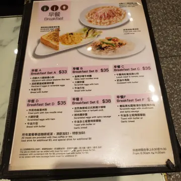 現在早餐普遍要花費30多元。我看輕湯粉和煎炸雞魚豬,重視炒蛋和麵包。炒蛋和烤麵包可反映該店質素的高低。此店的F早餐份量如大兵艦,炒蛋面積長約15厘米,厚厚的,比快餐店多兩倍。啖啖有黑松露味,滿口碎菇片,蛋嫩芳香,是上上品。等了7分鐘,是即叫才做之作。煎腸是用大直徑,切成薄片,墊在炒蛋之下。名辣腸,全不辛辣。麵包是港產規貨,特別糯綿,具口感和飽腹。以蒜蓉炸焗,油香盈腔,滋味倍增。只是咖啡平庸而已。Read More