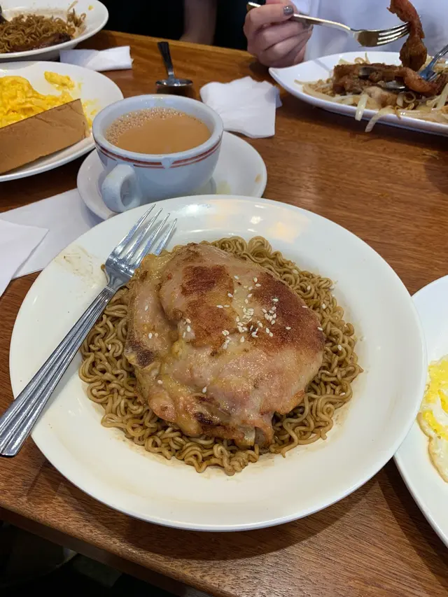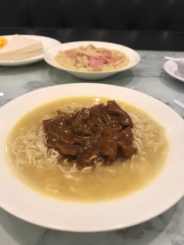 今日要早返工,為左係忙碌既一天有美好既開始,我選擇左黎紅磡冰室同友人食早餐。其實係因為友人介紹話呢間早餐好飽肚,可以唔使食lunch,於是就去試下。一入去裝潢好靚,好乾淨。搵左個卡位坐底,睇完餐牌感覺選擇冇快餐店黎得多。一落完單,啲伙記唔洗10分鐘就上晒所有食物飲品,好有效率,重要既係唔會好似有啲茶餐廳咁放啲印單紙係食物上面,感覺衛生好多。講返啲食物,我叫左個沙爹牛肉麵+火腿+炒蛋。炒蛋真係好驚喜😍唔單止好嫩滑,仲唔會落太多奶令蛋味消失,雖然睇落唔多,但好filling.另外個麵都煮得剛剛好,唔會落過多汁令成碗麵太鹹,麵既軟硬程度剛剛好,有機會我都會再返黎食查看更多