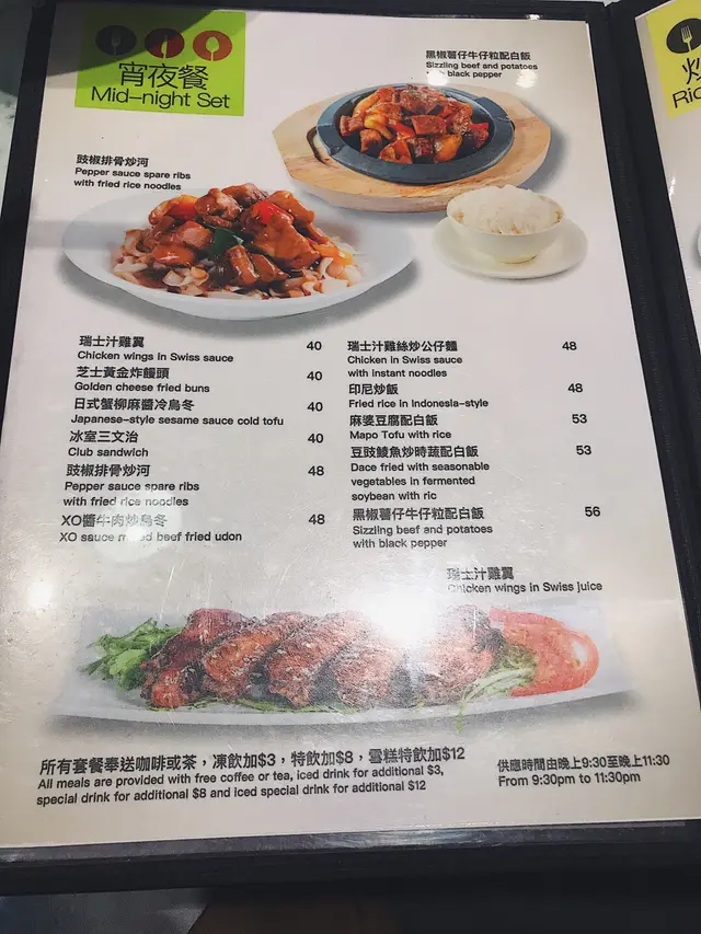 冇幾耐之前泥食過特餐,炒蛋、熱奶茶同蒜蓉多士都唔錯。今晚遲左食飯,所以一食就食宵夜餐。款式唔係多,但都有輕食至飽肚既選擇。叫左兩個小菜,(左)黑椒薯仔牛仔粒同(右)麻婆豆腐,份量望落都唔少。豆腐大大粒,汁多而稀,所以唔太咸,撈飯一流,3粒⭐️牛柳粒細細粒,有黑椒味,汁多,唔算重口味,有穫氣更好,3粒⭐️熱奶茶幾滑,奶味稍重,一茶匙糖就甜左d,所以落少少糖已經夠甜,多d茶味更好,3.5粒⭐️如果你鍾意我今次既分享,請你馬上立即宜家就俾個♥️同關注我😬按我個頭像然後按「關注」🙇🏻‍♀️查看更多