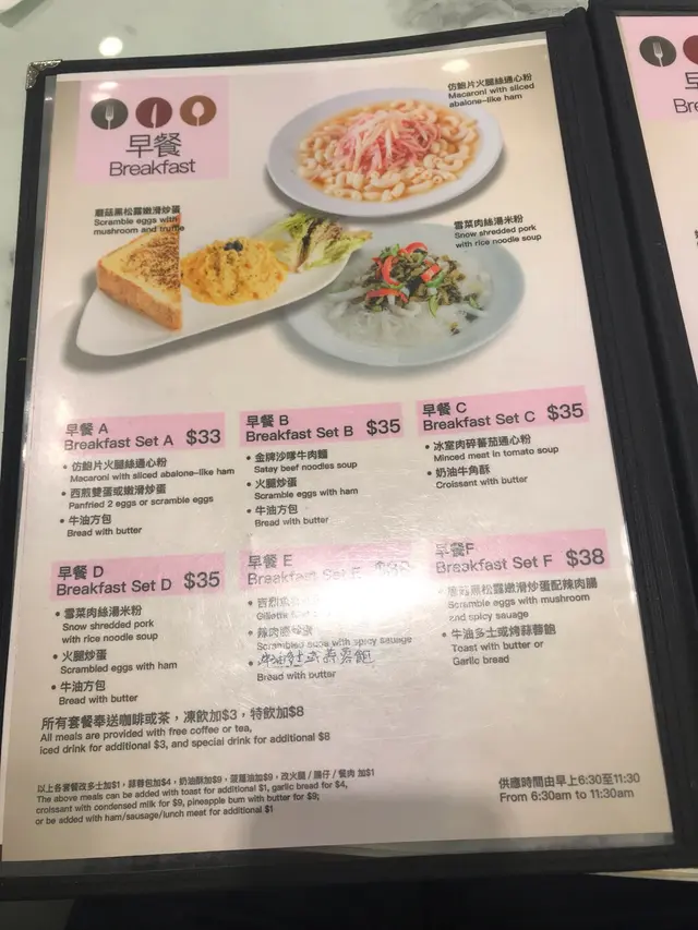 Breakfast time- I ordered the fish fillet breakfast with scramble eggs, ham, garlic toast and iced lemon tea. They give generous portions, tastes decent but the scramble egg can be a bit more cooked. Pretty filling breakfast, I like the taste.查看更多